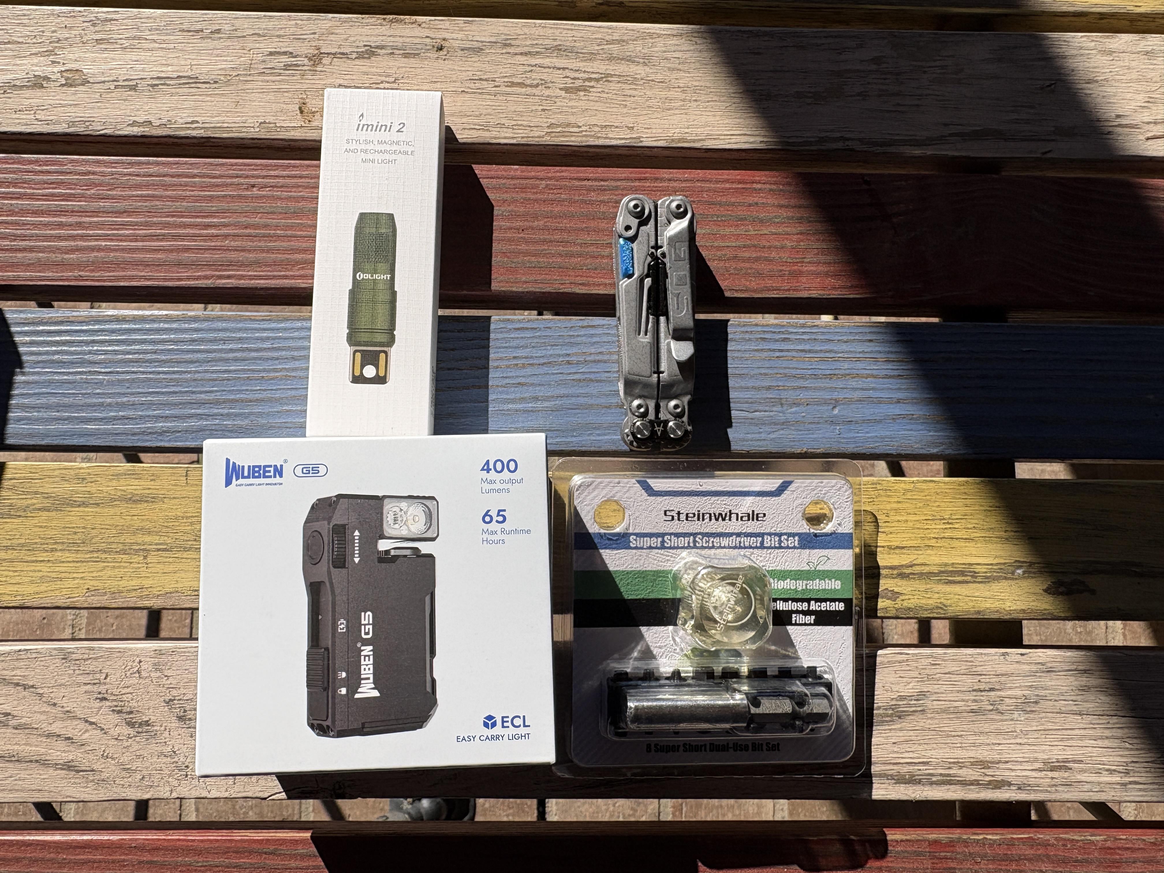 Picked up a thumb stud for the powerpint from Hacktical on Etsy, also grabbed the steinwhale double sided bits for my sog as well. Loved the Wuben G5 as it’s been a great edition to my work EDC and decided to keep one in my personal vehicle. And honest I’ve been wanting a keychain light and they were on sale.
