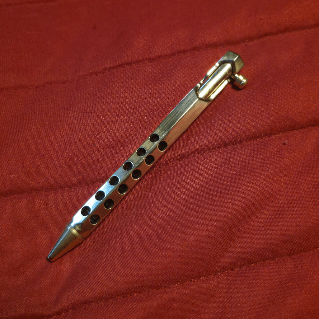 I dont want to break the advertising rule so I wont post a link to the specific pen I bought. Just search brass bolt action pen in amazon and I garauntee you’ll find one