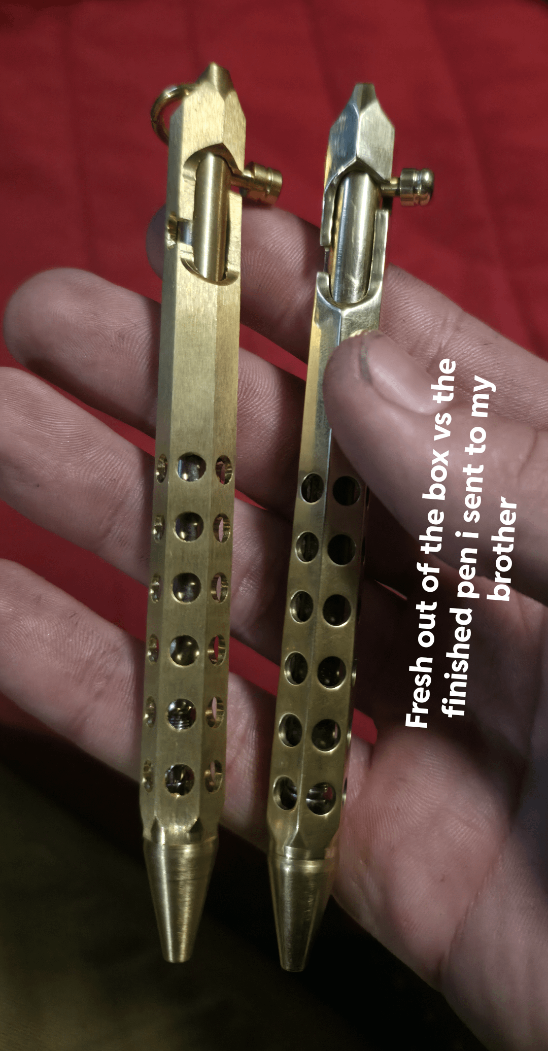 Hello all, this is my first post here but I figured some of you might be a little interested in these cheap pens on amazon. Everyone loves a good bolt action pen but not everyone wants to spend $40 for one. I found this pen for $16 on amazon in a 2 pack and on receiving them was very unimpressed with the fit and finish. I took it upon myself to bring them up to scratch.