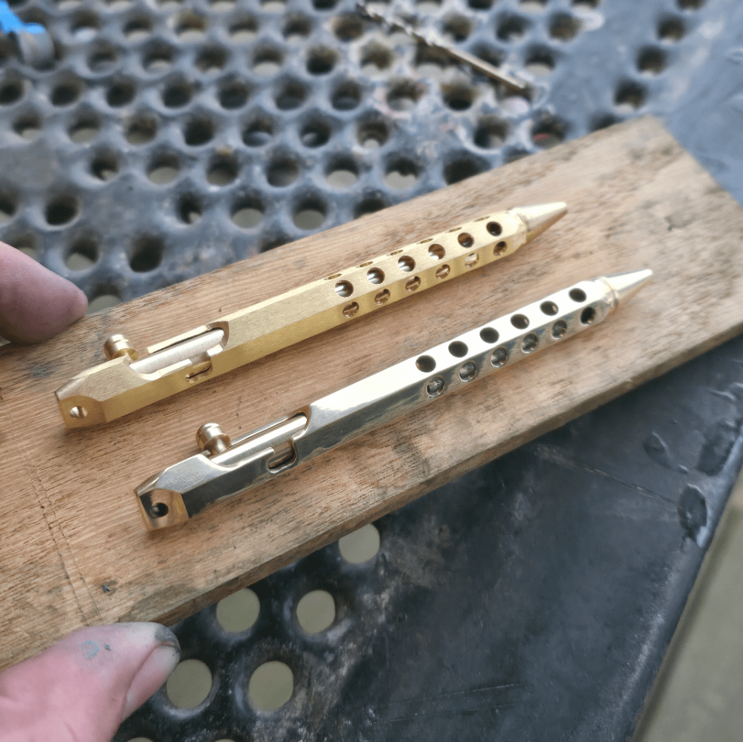 TLDR: Cheap brass bolt action pen, an hour of your day and a rotary carver = decent EDC brass pen