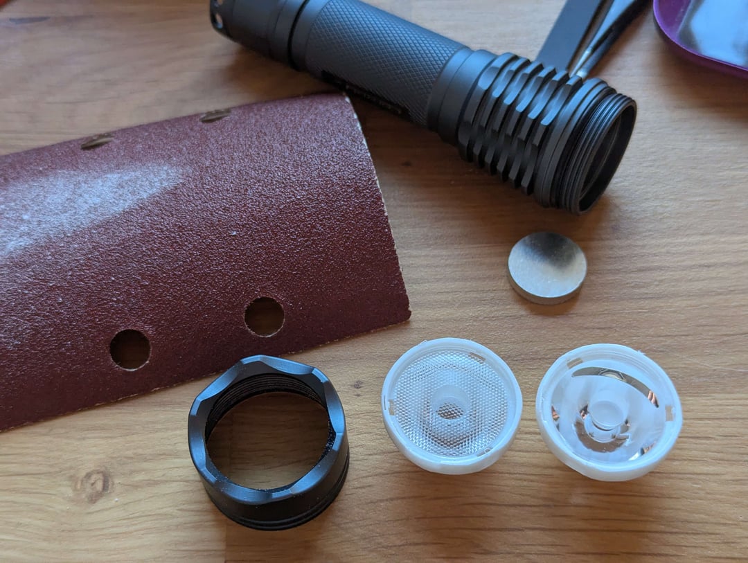 Found some TIR on AliEx that I thought could fit the M1 so I decided to snag a few to try out. The 8° ended up *very* ringy, but I do like the 25° one for forest walks! Gives a nice soft beam, but of course at a significant cost of range.