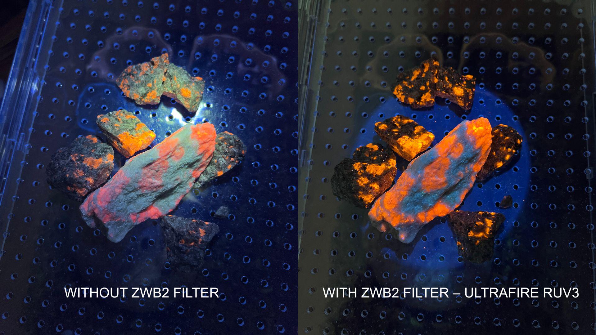 Right: UV with a ZWB2 filter (this was taken with an Ultrafire RUV3).