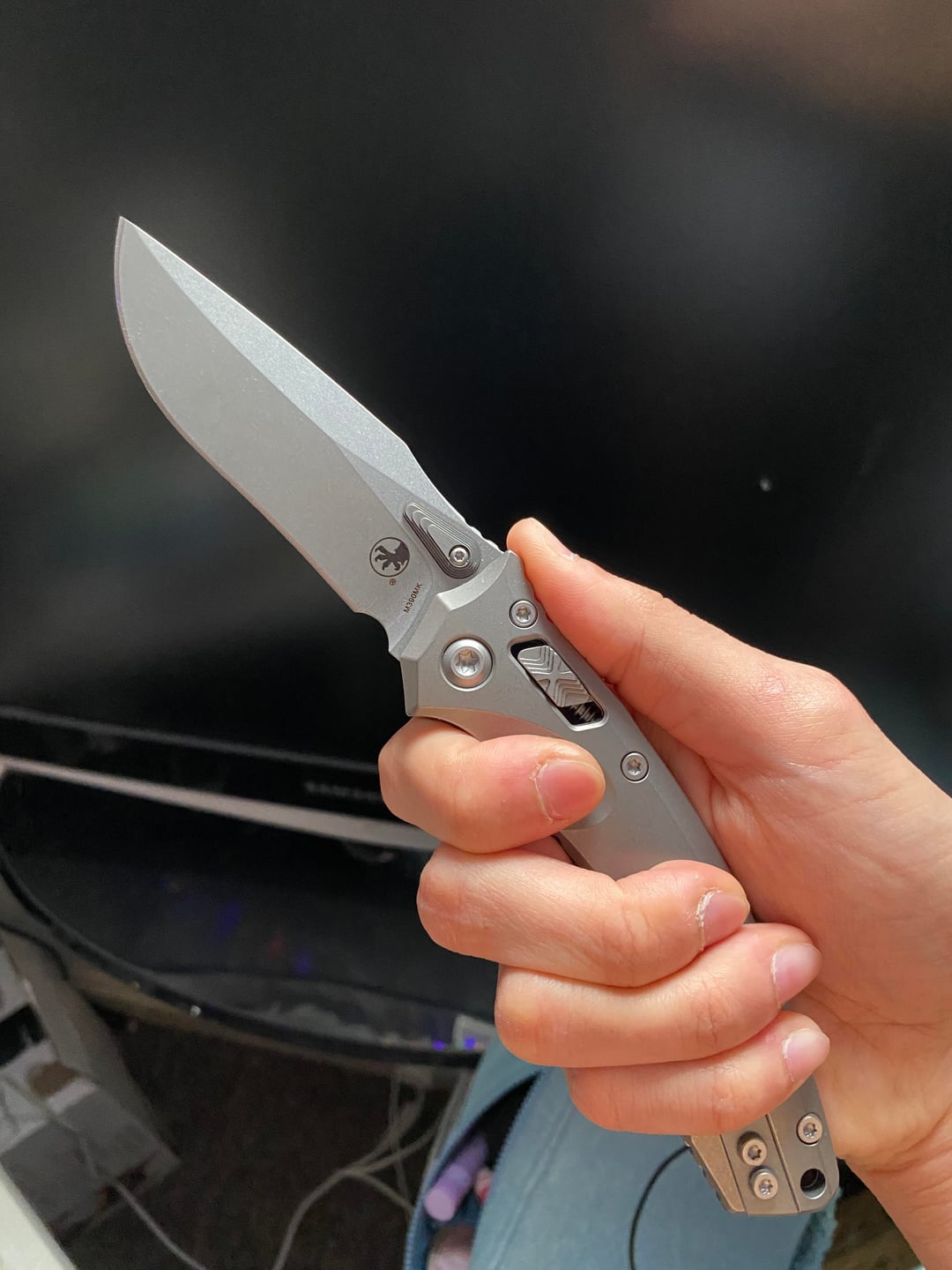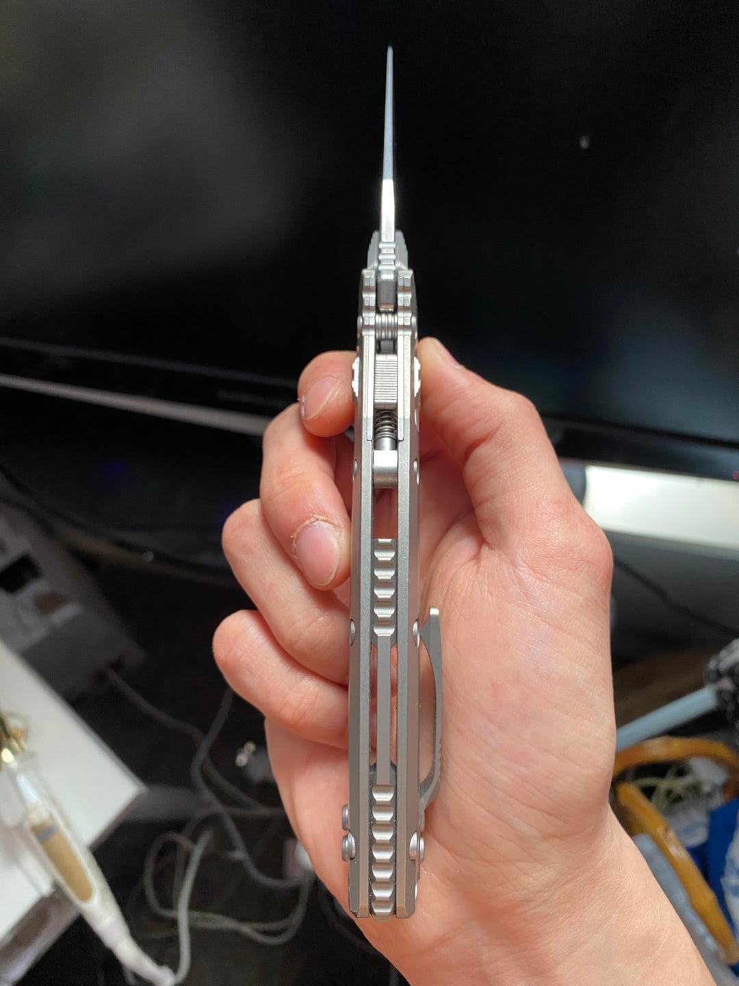 Love this blade. Have the g10 one though so the weight isn’t bad. Have to imagine the Ti one is a hefty boy.