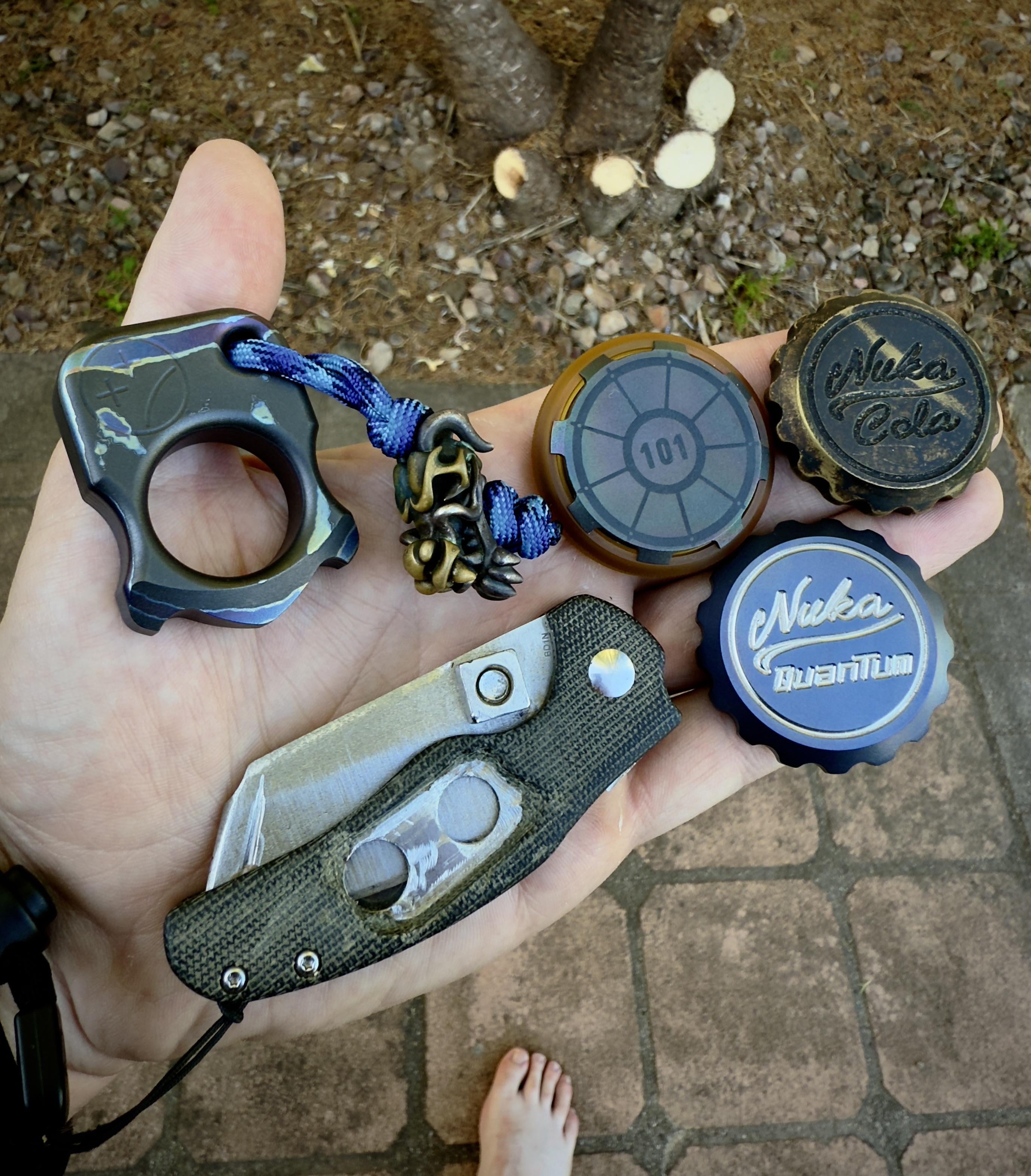 In EDC My edc January 6, 2026 darkti afk knuckcpprhd dragon beadnick swan nuka quantum capnick swan nuka cola capzirc capcustomised sheepdog with olight lanyardfoot by Conzyedc EDC Prev Post Non negotiables. These are the only items I never leave the house lol. January 6, 2026 Next Post [NMD] Sofirn HS40: 3000K high CRI “mule with cut-off” January 6, 2026 Related Posts Titanium in my pocketses January 16, 2026 Leather sheath for the Soddy January 16, 2026 Today’s Blade: Tom Krein Alpha #NKD January 16, 2026 2 Comments AutoModerator 1 week ago Thank you for posting to r/EDC! Include a detailed item list (make/model) within **1 hour** of submission. Lists can go in the title, a comment, or the image. Posts without lists will be removed. If you have already provided a list, not further action is needed, thanks | [FAQ](https://www.reddit.com/r/EDC/wiki/faq)*I am a bot, and this action was performed automatically. Please [contact the moderators of this subreddit](/message/compose/?to=/r/EDC) if you have any questions or concerns.* cobrax74 1 week ago What’s the use for the upper left thing? And what’s it called?Write A CommentYou must be logged in to post a comment.