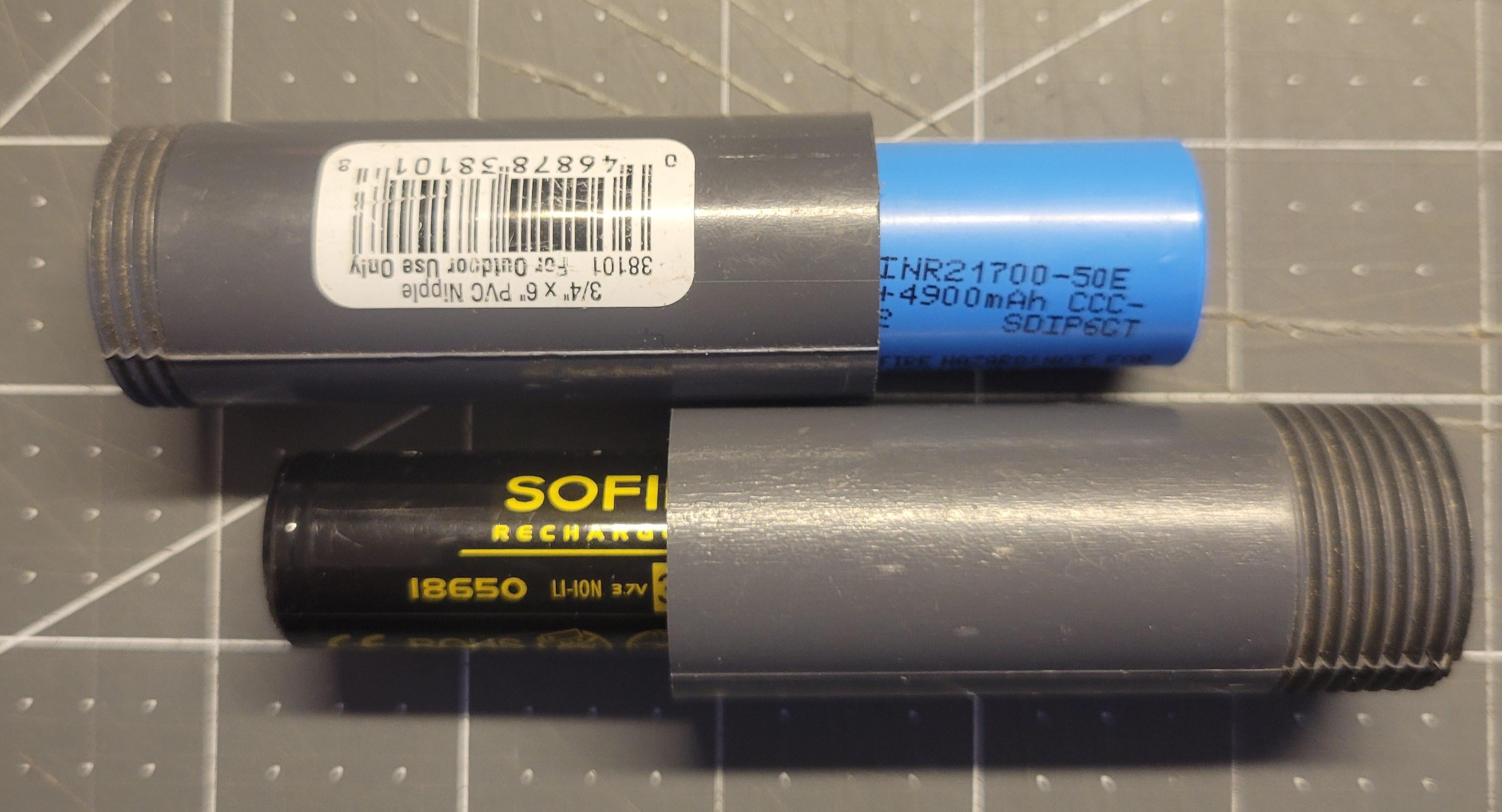 In Flashlight Battery Adapter Hot Tip Of The Day January 6, 2026 I just discovered that a piece of 3/4" gray water pipe fits an 18650 perfectly into a 26650 tube, and with a drill press and a 7/8" bit can fit a 21700.by Terrible_Lion_968 flashFlashlightlight Prev Post What did y’all grab for #TiTuesday? January 6, 2026 Next Post NKD! Lionsteel Twain January 6, 2026 Related Posts 2000K is wild January 14, 2026 Fog Shot January 14, 2026 All Convoy 23.3mm TIRs January 14, 2026 2 Comments Terrible_Lion_968 1 week ago https://preview.redd.it/f0lsi8mytsbg1.jpeg?width=3024&format=pjpg&auto=webp&s=a2fc60849914f51e8f528b6774e54ec3f3921ae5 General-Try-2210 1 week ago interesting. i just use paper and glue to make tubes and cut .22lr casings when the battery is too shortWrite A CommentYou must be logged in to post a comment.