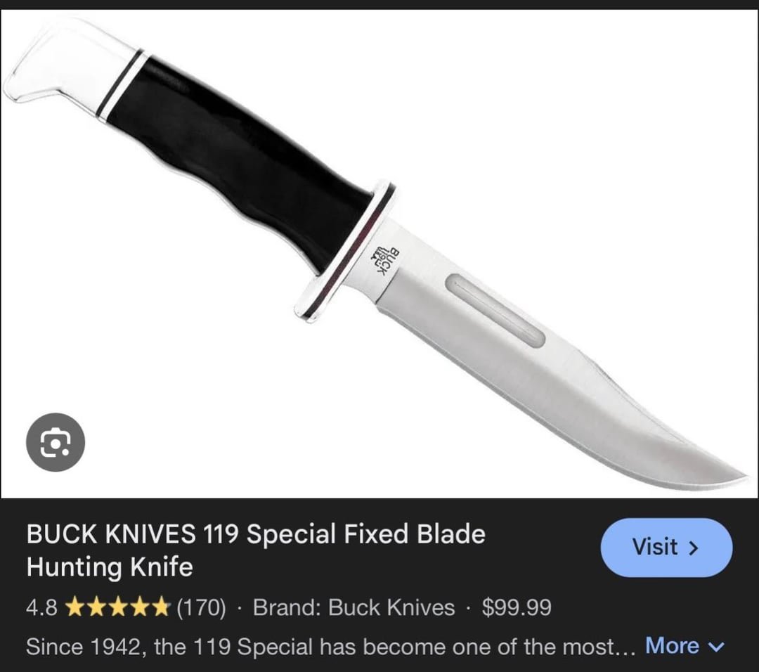 I was wondering if you guys could recommend a similar size or a little bigger blade that is 100% functional. I was thinking about the Buck 119 (2nd picture). Any recommendations would be great.