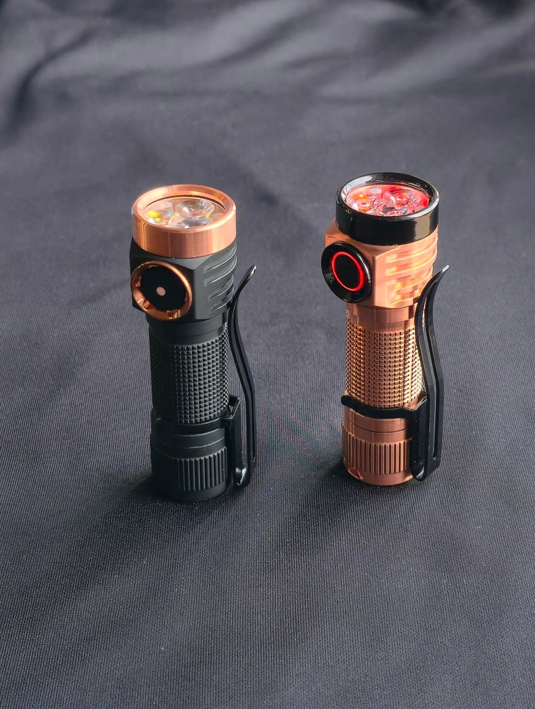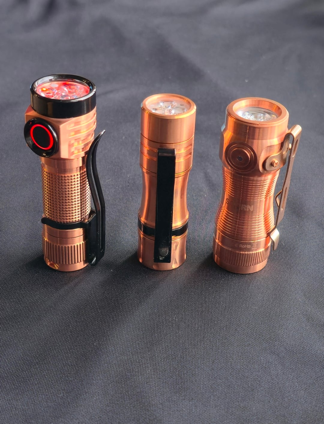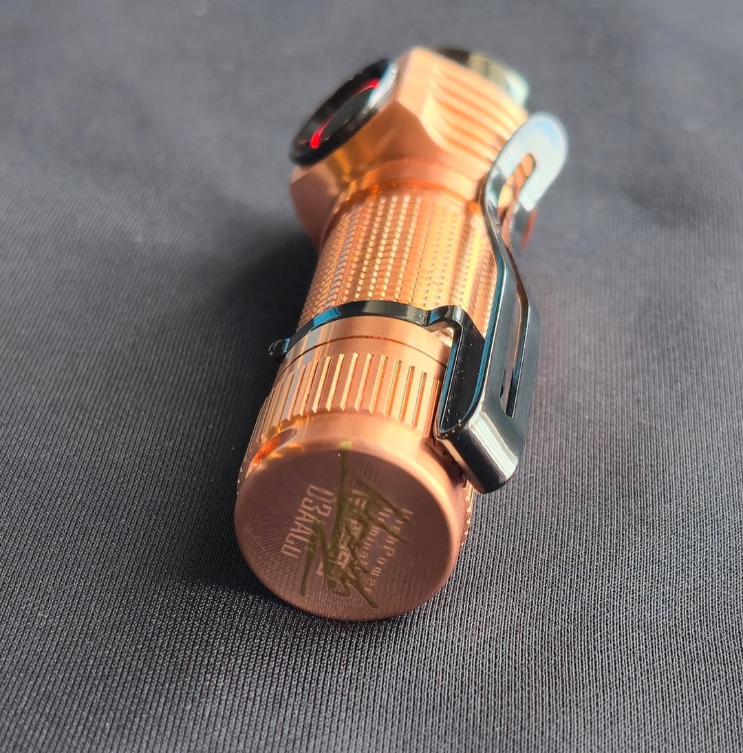 Started off as the copper version and added the stainless black stuff as well as the switch ring and cover. NTG 2700k emitters. Hank also signed the bottom of the tail! I hope this inspires many other awesome builds! I've included pics comparing it to other new smaller copper edc lights. Thanks for taking a look and have a great day/night!