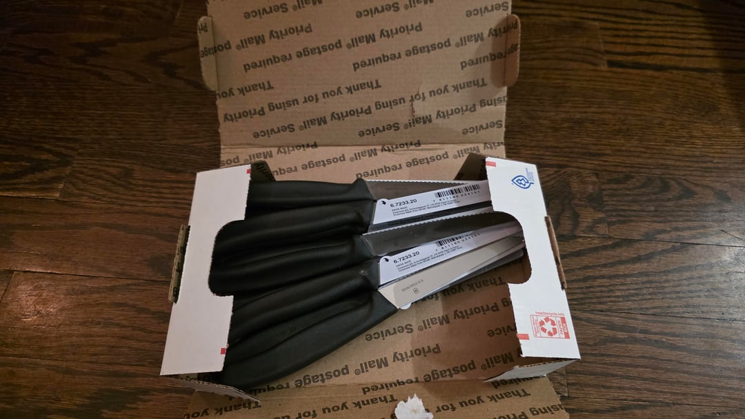 So I bought 12 of these knives on Amazon after reading so many reviews on steak knives. Just wanted something that cut really well for everyday use and nothing fancy. They came in a USPS box just loose with no other packaging except for the blade sleeve. Are they legit?