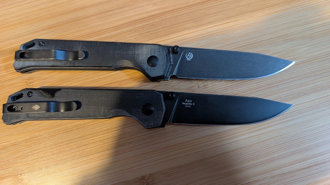 I usually don't do this but I got a backup to my Begleiter 2 since I think they were discontinued and it's my favorite. Did research on the seller and they seemed legit, but the logos on the new knife are different than my other Begleiter or my other Kizers. I wanted to ask if the new one with kizer just written on it looks legit or fake