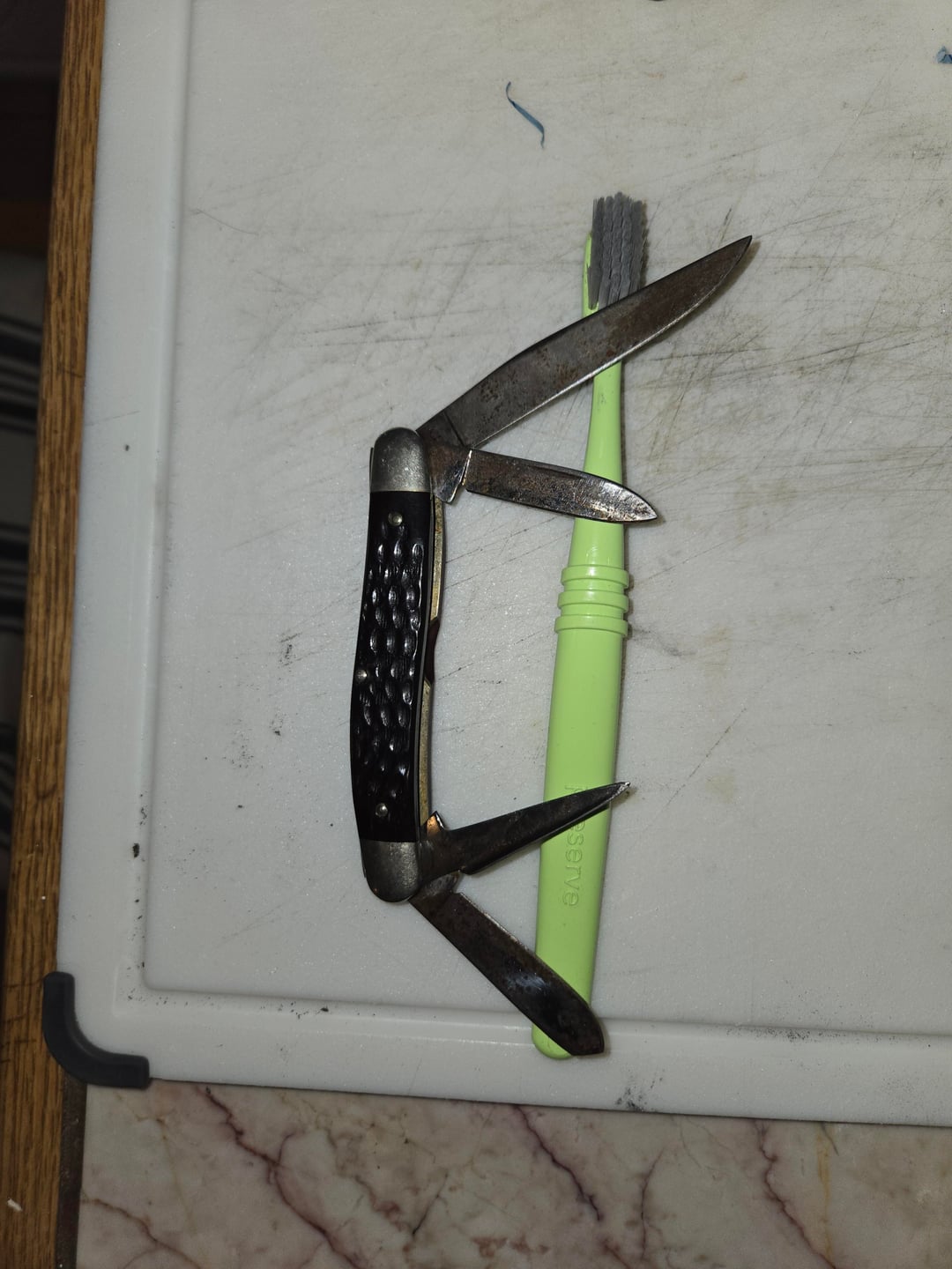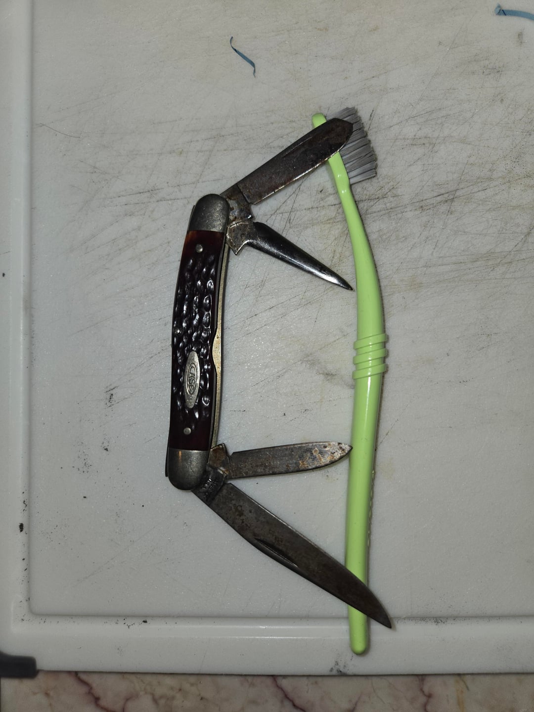 In KNIVES Vintage Unknown? January 9, 2026 I recently got this older Case XX, I was wondering if someone knew anything about it? Why does it have 3 blades and a scoop thing? What is the scoop? Is it worth anything? by No_Bathroomhere KnifeKnives Prev Post Hey friends. Need some help. January 9, 2026 Next Post Massdrop Gent Pocket clip hole spacing? What clips fit? January 9, 2026 Related Posts Spyderco Para 3 2018 S30V Hardness Results. 60.9 HRC. January 15, 2026 Neat and discrete. January 15, 2026 What is this knife ? How to restore and take care of it ? January 15, 2026 2 Comments 2Weird2Cap 7 days ago Your toothbrush looks like it came out of a toothpaste tube. ecclectic 7 days ago From the patina I would guess mid 70s to early 80s, but the style has been around since the 40s. They don’t offer that particular arrangement anymore.Write A CommentYou must be logged in to post a comment.