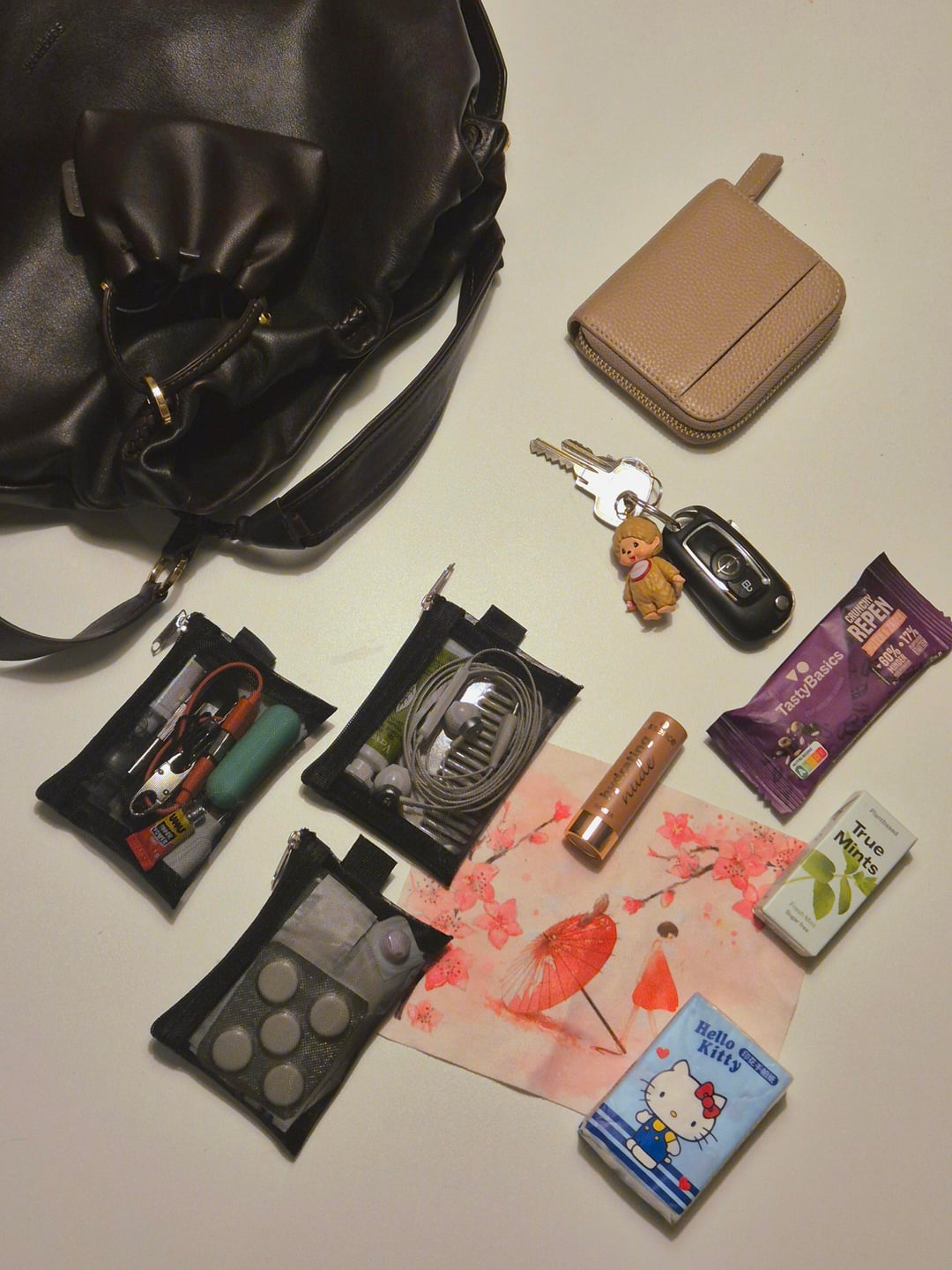 I feel like you’re organised and prepared. I think that you work in a professional/serious setting but the key chain and hello kitty tissues means it hasn’t fully crushed your whimsy!