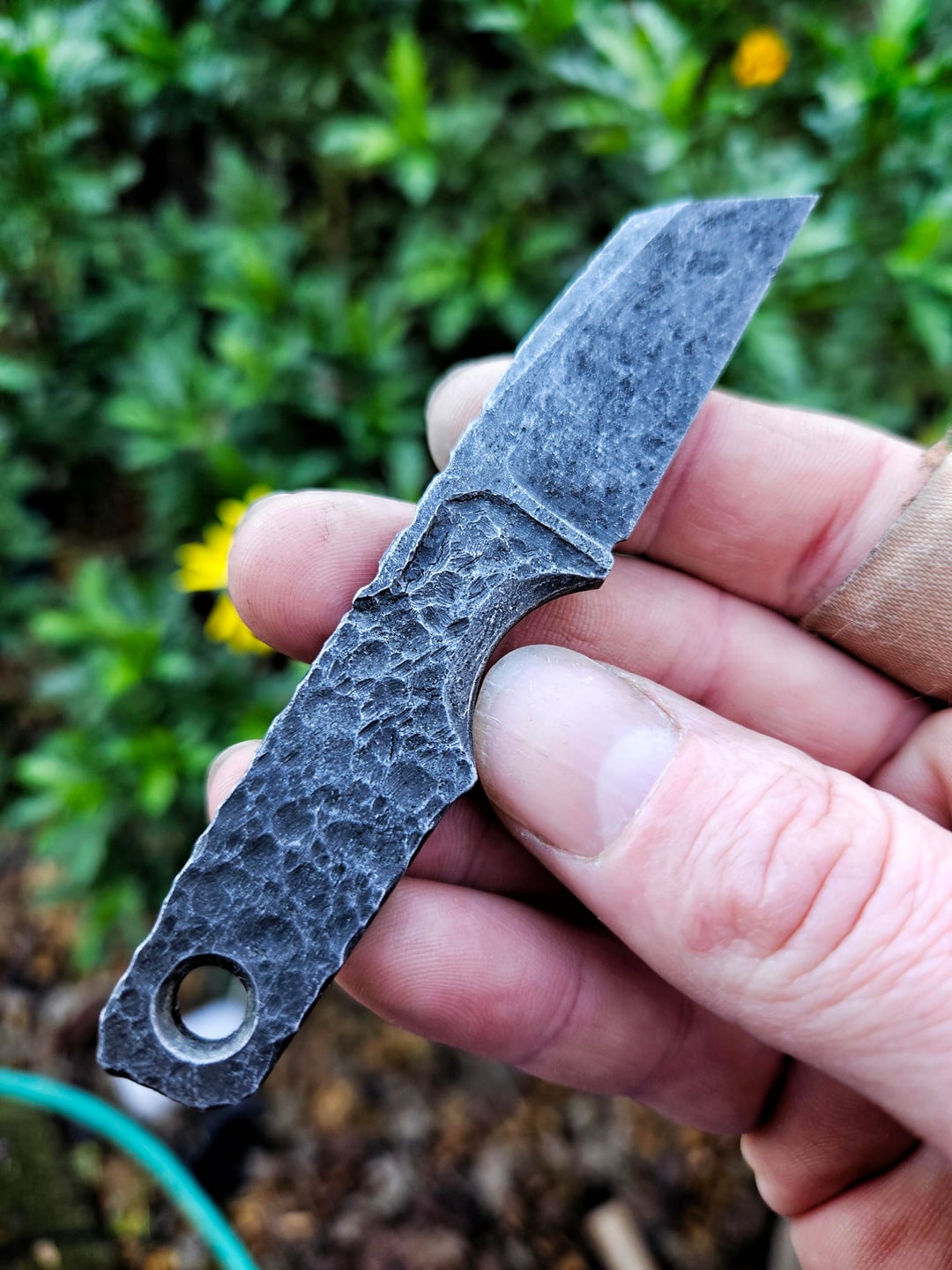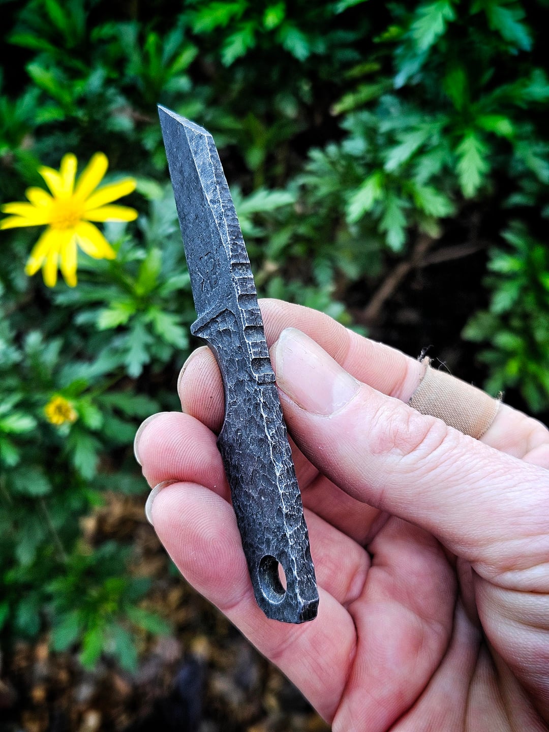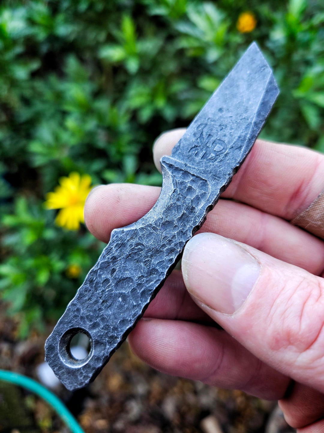 Here's the first 80crv2 I Heat Treated and it unfortunately got oversoaked and developed some small superficial stress cracks during quench around the handle.