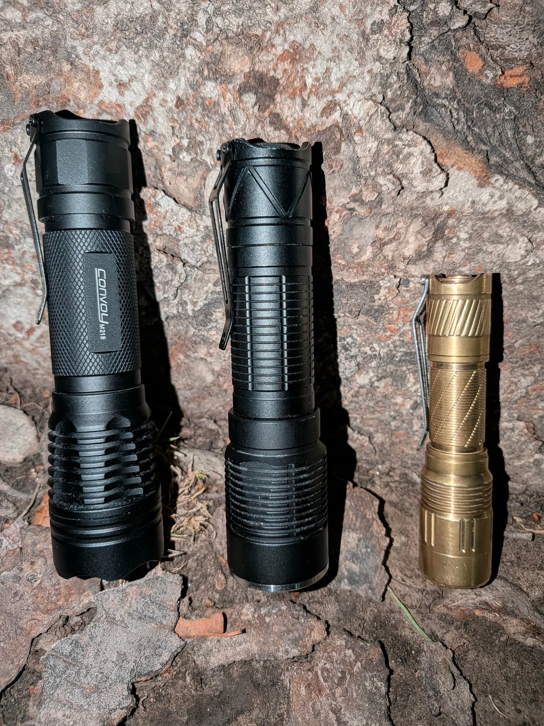 I assembled all these lights last night and decided to take them out tonight for some outdoor shots, I'm really happy with them! The SFT-42R is crazy bright, throws a huge hotspot pretty far. I don't like the tint, it has a greenish corona and hotspot, but for how well it performs it will stay how it is (maybe), I just wish it had a cleaner tint. The S16 I've had for almost a year, bought it back when the SFT-25R craze was in full swing, it was ok but that emitter has crazy rings in this host so I never really used it much. I swapped it out for an SFT-70 3000k with a 6V5A driver and an OP reflector, MUCH MUCH more enjoyable now. It's a lot more throwy than I expected it to be, and it even got rid of the rings that I thought were caused by the shiny SS bezel. The T6 is a brass light I've had for maybe 6 months but originally got with an SFT-40 5000k. It was a good little light, but being brass I felt was a little mismatched with the 5000k color temperature, so I swapped it for the SFT-40 2700k JA3 bin from Kaidoman (The only variant of SFT-40 that's still in production I believe, the others were discontinued for the gen 2). It feels a lot more balanced now, straight out of a Lovecraft novel. Overall I'm happy with these lights and happy with the progression in my soldering skills. Happy illuminating! 🔦