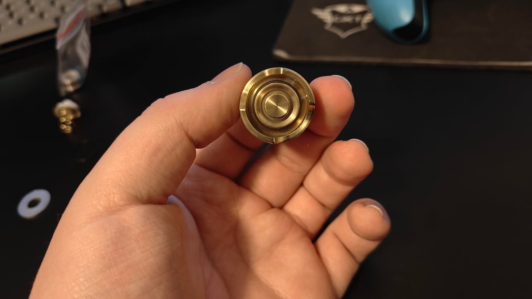 Maybe we should hint at simon to change the tooling on the brass version and install a brass button by default (no adapters needed).
