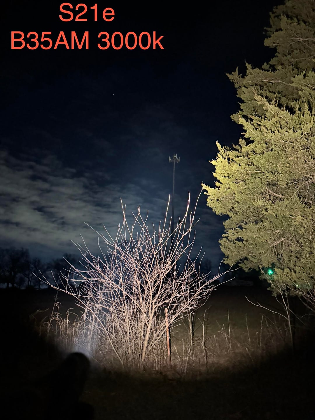 Huge fan of my new lights, great to walk with the S21e at night. Love the warmth of 3k,it’s my first B35AM and the beam is very throw/floody and the CRI is so good.. The C8+ is such a fun beam to wave around and hunt cell towers and trees. Slightly green but barely noticeable. I turned off night mode but the exposure and white balance are probably cooked so just reference the photos for beam pattern only. The color is not correct.