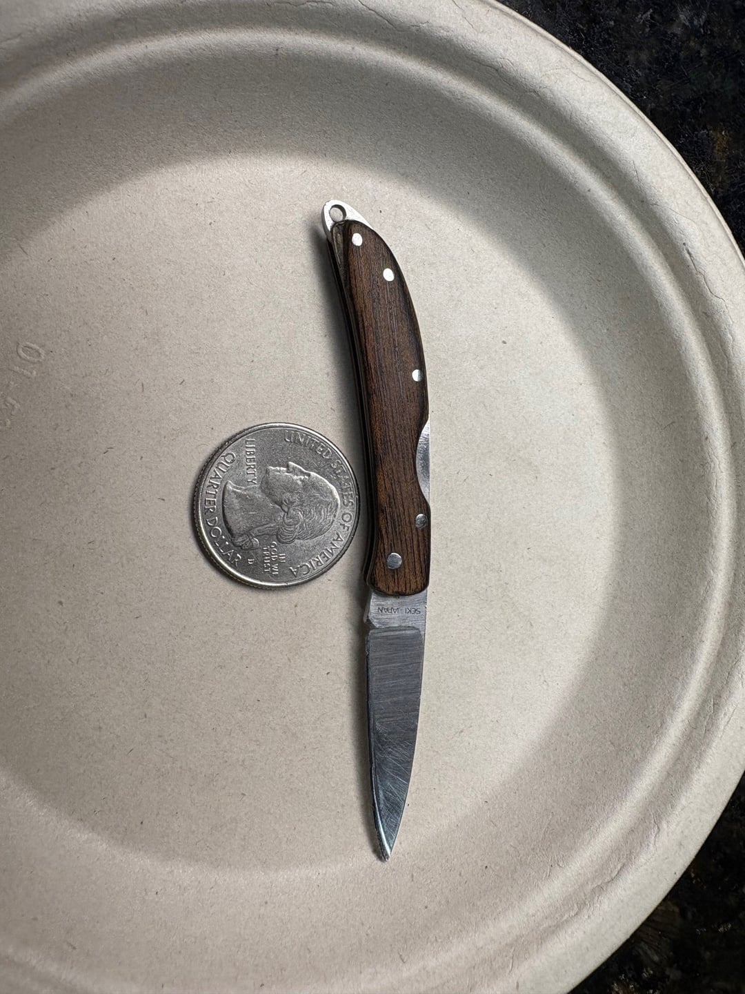 My dad was a real knife nerd and he died 30 years ago. I have a couple of his knives but my mother sold most of them at a garage sale when she sold their home after he died. This one is tiny and I really know nothing about it, all the knives he owned were pretty good brand names, and I see Al Mar on the internet but not sure if it is still the same company.
