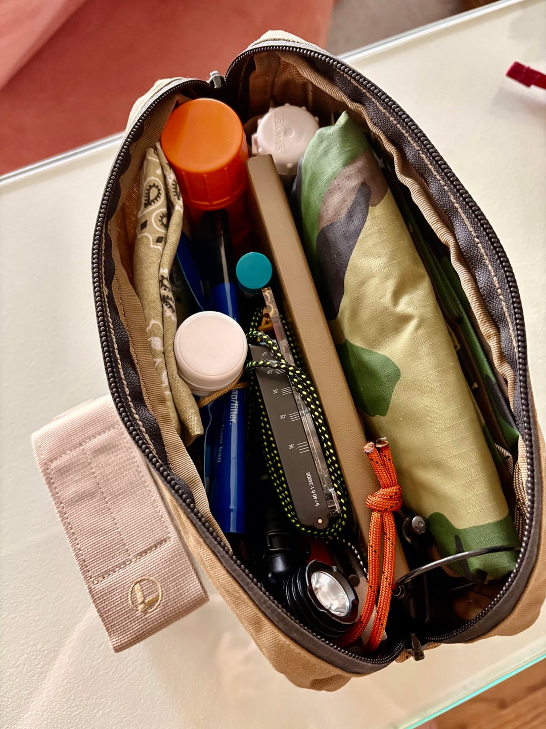 This rides in my EDC Backpack. Everything but the Leatherman fits in the pouch. I keep the Leatherman at the ready for easy access.