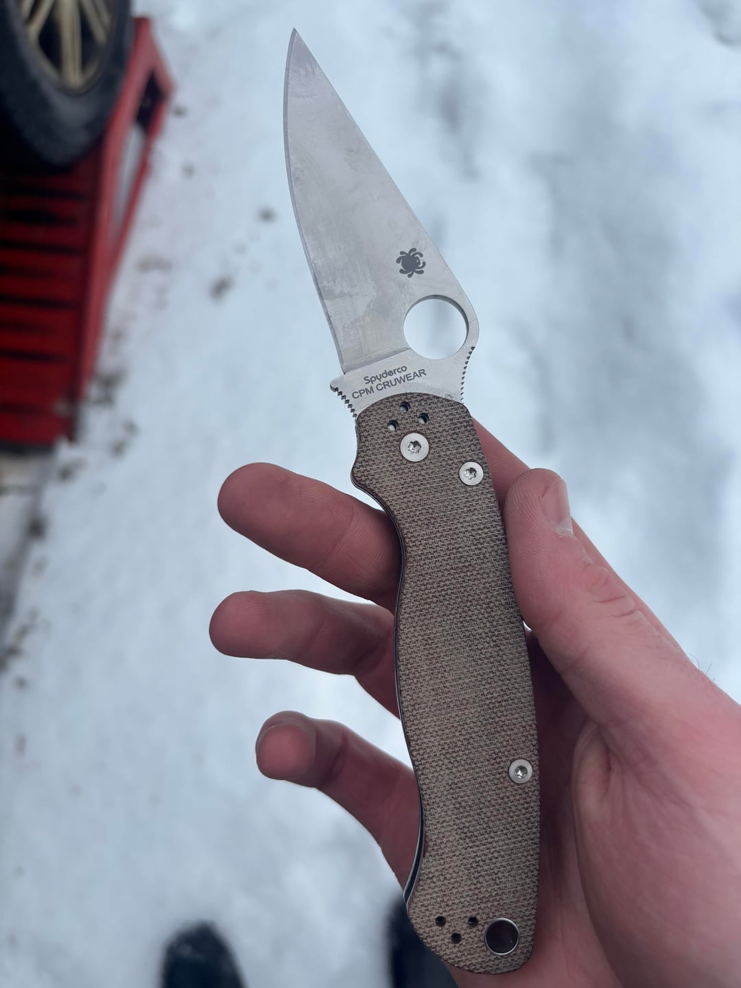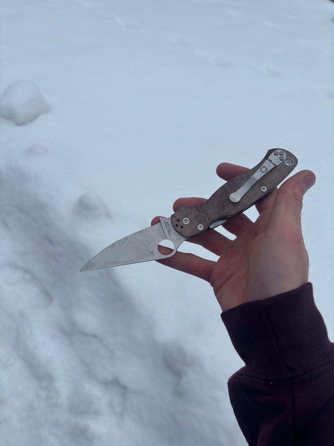 Finally got my hands on some Cru-Wear! Been putting a little bit of use on it today and it’s blown me away. Spyderco does an amazing job with their micarta as well. This is my 3rd spyderco and I’m liking it lot more than my Manix in 15v and Para 3 in Magnacut so far. Excited to see how it holds up.