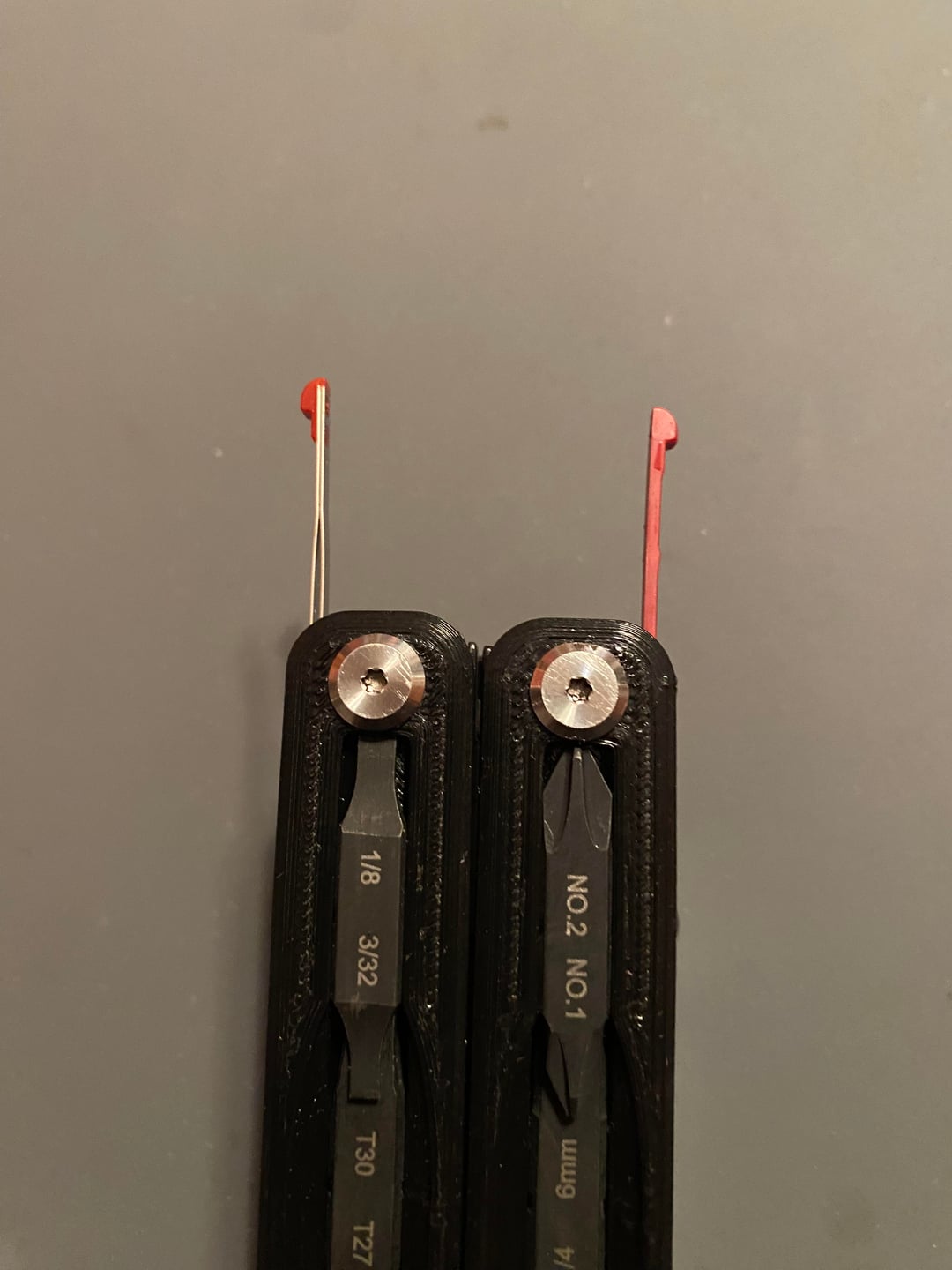 I have really been enjoying this modded Mossy Oak. I replaced the saw/file with these printed scales. They hold 6X flat bits and now 2X Victorinox scale tools. Under the scissors I tucked a micro bit holder/pick. Can't forget the thumb stud. The print doesn't match the G10 though, any suggestions?