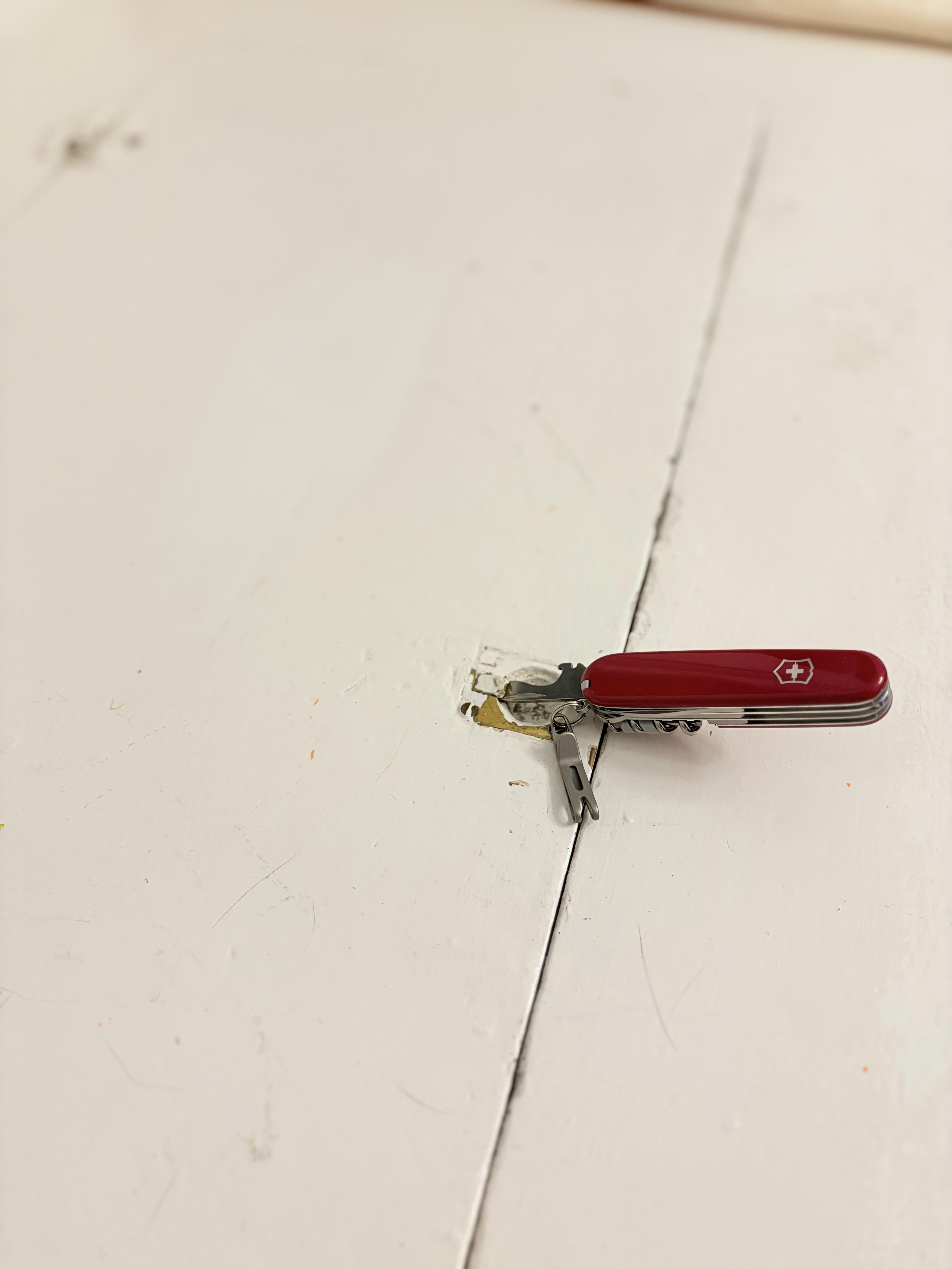 Victorinox Climber. Old storage hatch was missing the pull tab and the seams were too flush to pinch. Climber’s bottle opener can in clutch.