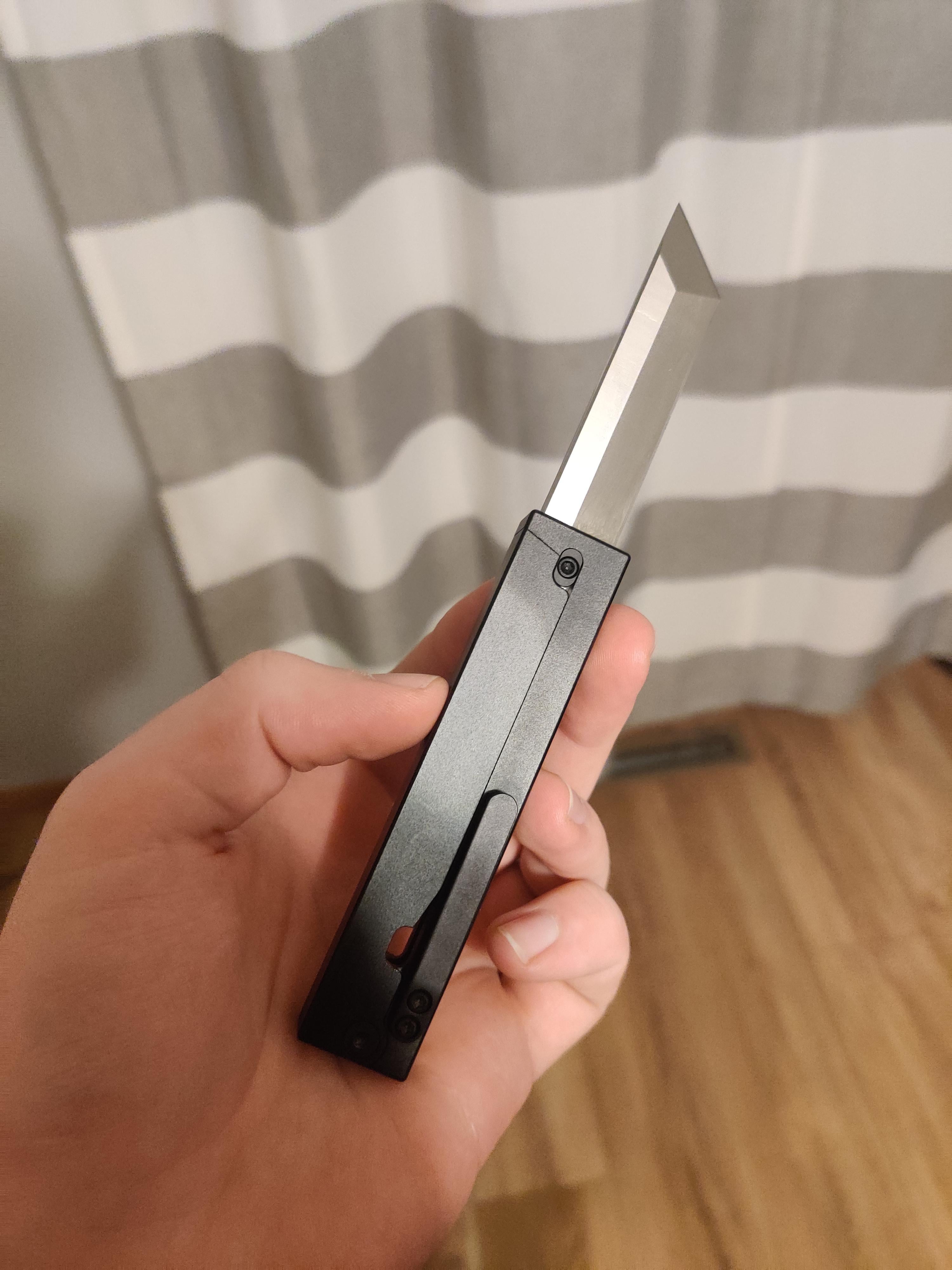 Picked this bad boy up because I found out what a gravity knife was a few weeks ago, and immediately decided I had to have one. It came down to this or an aluminum Reate, and I ended up going with this because the Reate safety latch was on the wrong side for a southpaw like myself. The magnetic closure on it is a bit stiff, but I'm overall satisfied and also sure I'll get better at flicking it.