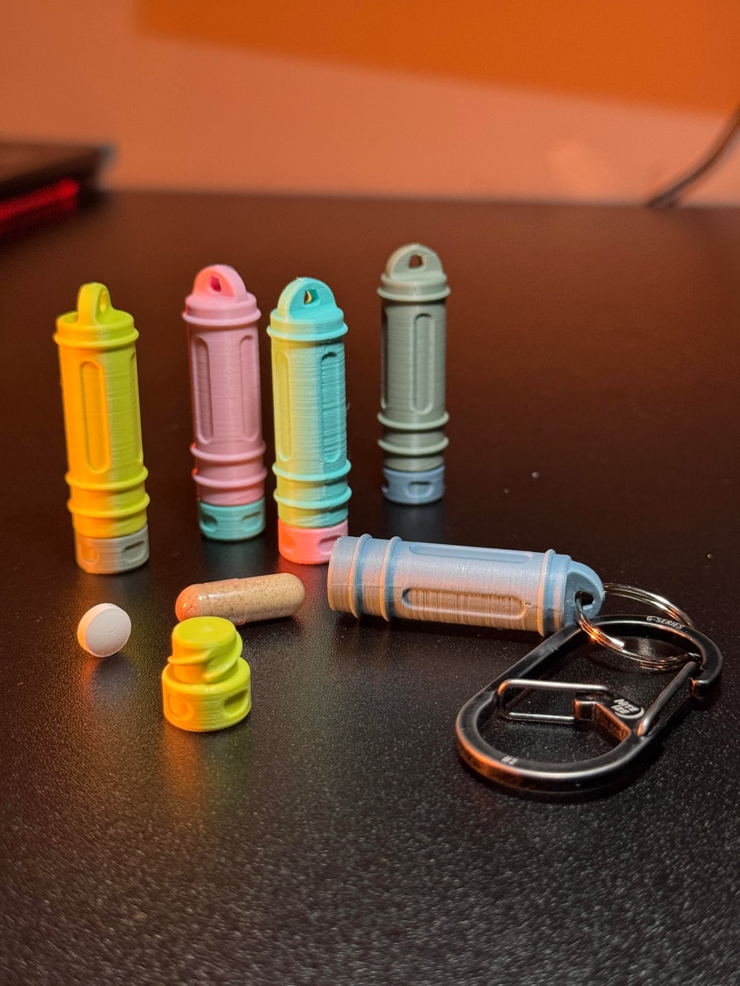 In EDC Designed a cool pill container featuring a triple start thread January 14, 2026 3D printed pill container Nite Ize G series #2 carabinerby Rkz_designs EDC Prev Post End of 2025 for me its with sofirn January 14, 2026 Next Post Kershaw January 14, 2026 Related Posts My EDC January 14, 2026 Fabulous case by Vaultcase January 14, 2026 Greetings from the Swiss Alps January 14, 2026 2 Comments AutoModerator 2 hours ago Thank you for posting to r/EDC! Include a detailed item list (make/model) within **1 hour** of submission. Lists can go in the title, a comment, or the image. Posts without lists will be removed. If you have already provided a list, not further action is needed, thanks | [FAQ](https://www.reddit.com/r/EDC/wiki/faq)*I am a bot, and this action was performed automatically. Please [contact the moderators of this subreddit](/message/compose/?to=/r/EDC) if you have any questions or concerns.* Rkz_designs 2 hours ago Do you think it will look good in Steel?Write A CommentYou must be logged in to post a comment.