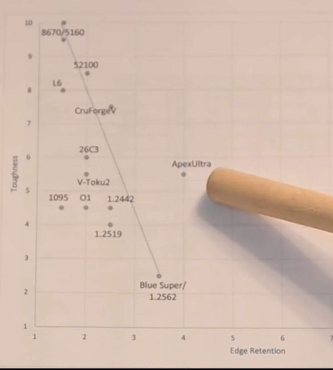 From a material science point of view, these graphs are jacked. Toughness is probably the best property you could reference to compare edge retention, and these graphs show an inverse relationship. The fact that there’s no actual units or values given is frustrating.