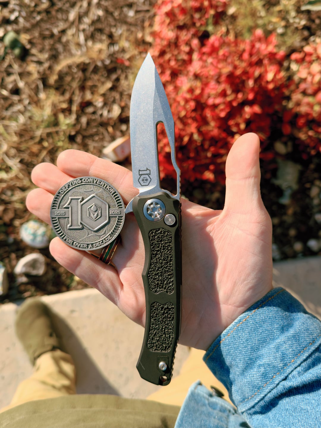 Picked up this beauty today. These were Blade Show exclusives in 2025 to celebrate the 10 year anniversary of Heretic. Well, I was at that show and missed out. But Heretic had sent a small amount to dealers and Sheels just had one as a display since last Summer last year lol. I saw it and immediately told them I'd take the display.