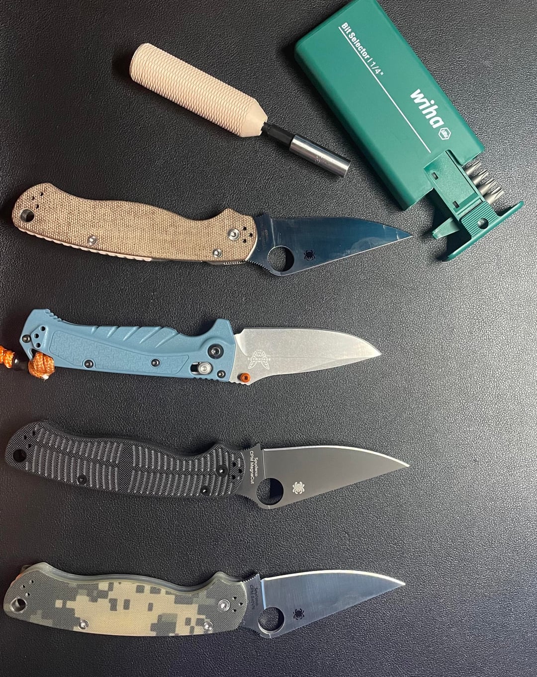 The green and orange combo reminds me of the Benchmade Tagged out.