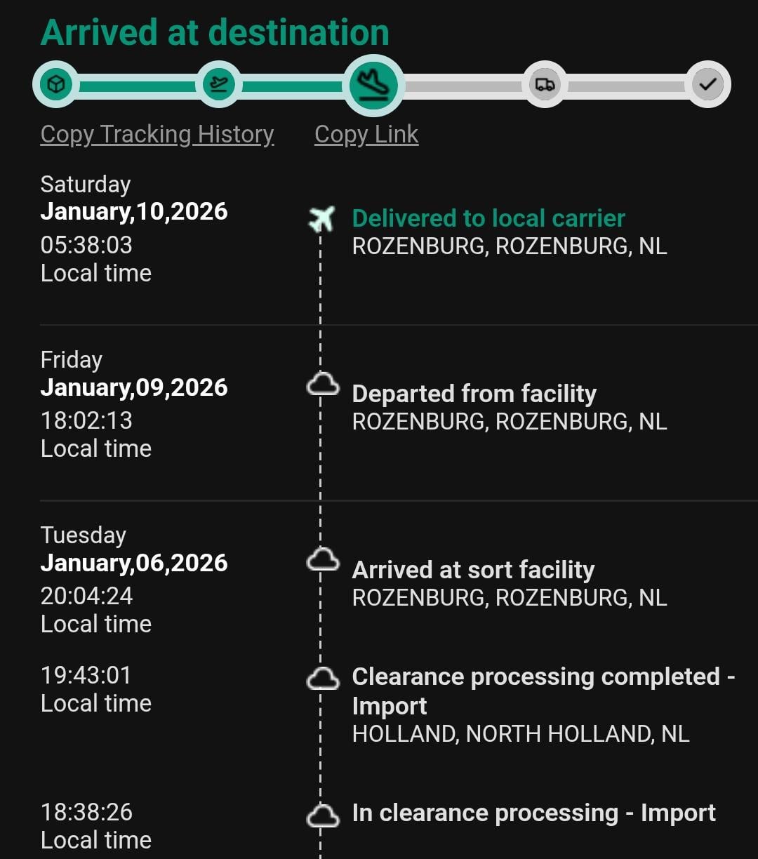 Hello, I ordered from Convoy on the 01.01. It says it got delivered to the local carrier 5 days ago. But the destination is in austria so why would it be Rozenberg, NL?