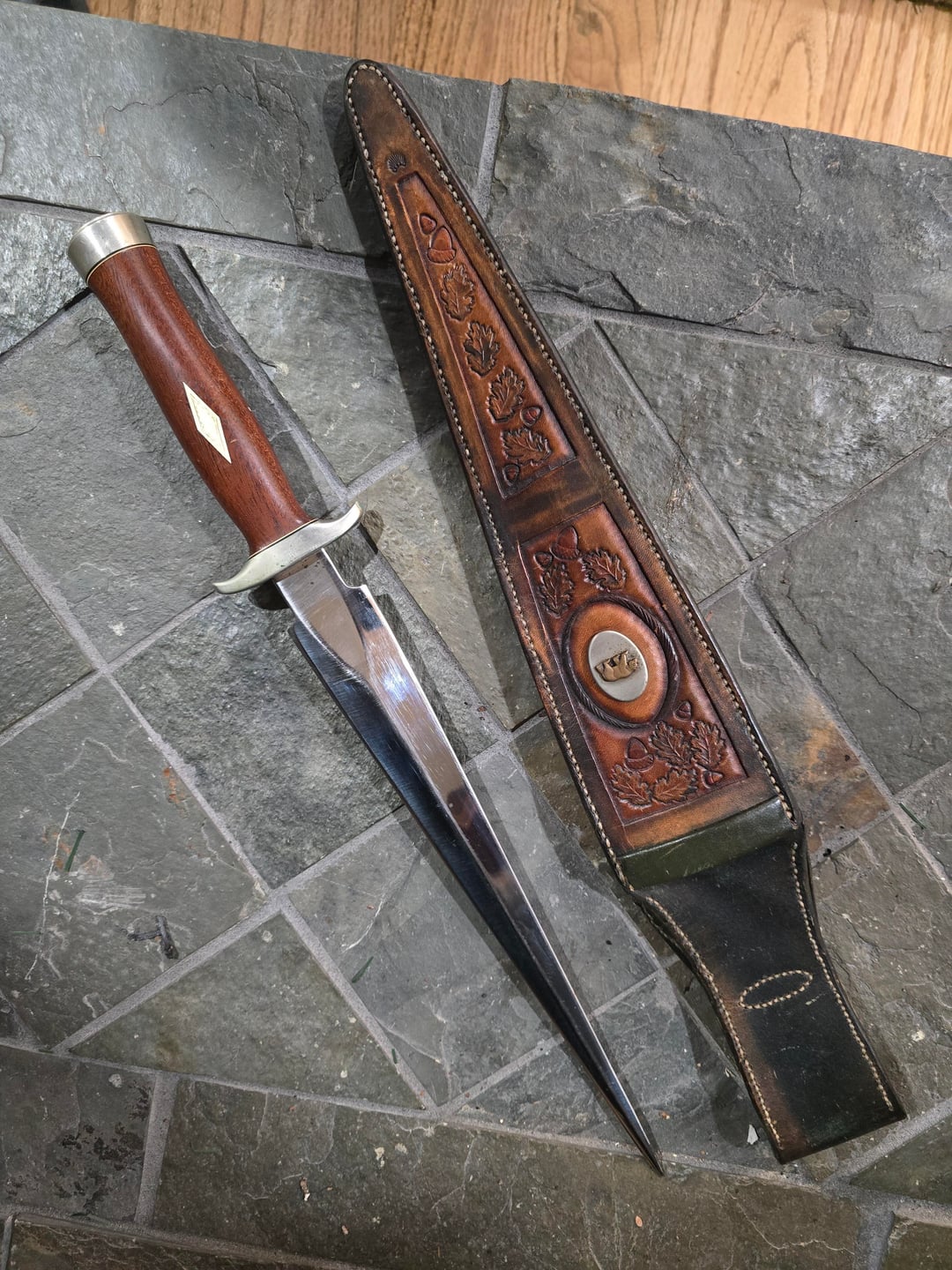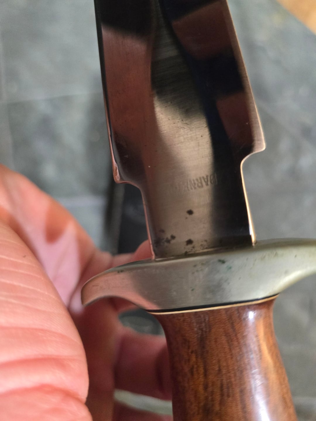 In KNIVES Vintage Benchmade dagger – seeking info January 16, 2026 Found this in the attic at my dad's house. It looks old, has a custom tooled leather sheath, stamped "Benchmade, Jack Barnett Maker" on the back of the sheath. Can't find anything online in terms of history, rarity etc. 12" blade.by HolonParticle KnifeKnives Prev Post Titanium in my pocketses January 16, 2026 Next Post This is the Way! January 16, 2026 Related Posts 15n20 Chef fly around with black G10 and white G10 liners and brass pins. January 16, 2026 Next buy January 16, 2026 What is this blade marking for? January 16, 2026Write A CommentYou must be logged in to post a comment.
