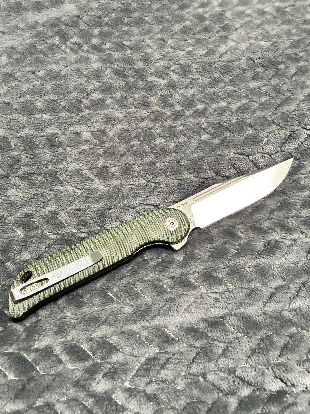 A few other great choices in Micarta: * Vosteed Psyop * Spyderco Military, PM2, Manix 2/XL (all in Crucarta) * Spyderco SpyOpera * TRM Neutron * Chaves Blue Label Redencion 229 * Chaves Blue Label Scapegoat 229 * Chaves Blue Label Sangre 229 * TRM Atom * BergBlades Alpha * Bergblades Mini Sweeney * Giantmouse REO * Giantmouse Biblio XL * Bestech Cetus * Bestech Syn * Reate Exo-M (gravity) * Zero Tolerance Hinderer 0562MC * Vero/Protech Synapse (ots) * Pena Mula * Vero Axon * Benchmade Crooked River