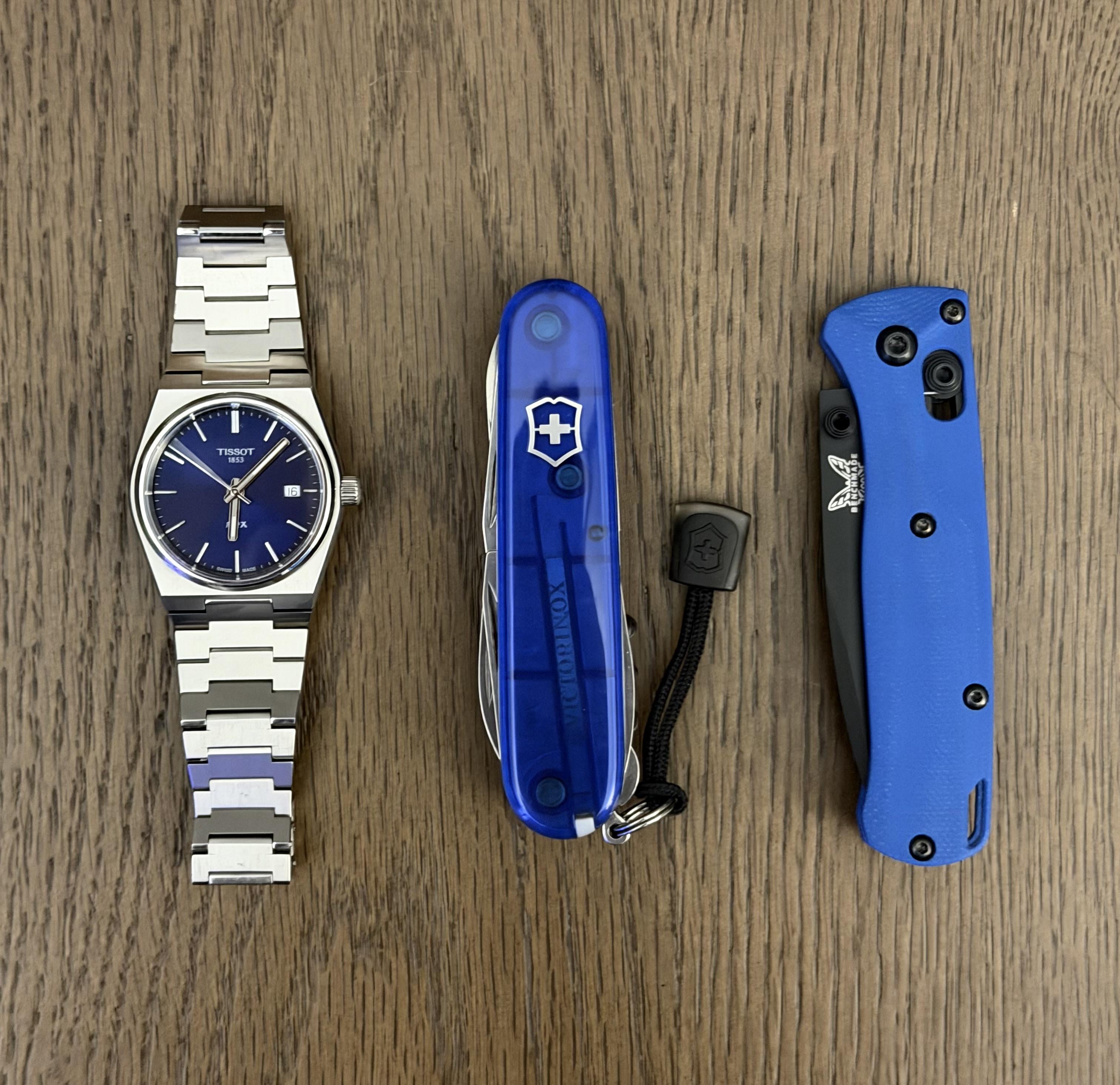 In EDC Feeling Blue Today January 16, 2026 – Tissot Prx 35mm – Victorinox Sapphire Climber– Benchmade Mini Bugout 533-2 with blue G10 from Flytaniumby KennBurr EDC Prev Post Everyday bag January 16, 2026 Next Post Foggy January 16, 2026 Related Posts Gear going into 2026. Curious what will change. January 16, 2026 One is none. January 16, 2026 Current edc January 16, 2026 1 Comment AutoModerator 2 hours ago Thank you for posting to r/EDC! Include a detailed item list (make/model) within **1 hour** of submission. Lists can go in the title, a comment, or the image. Posts without lists will be removed. If you have already provided a list, not further action is needed, thanks | [FAQ](https://www.reddit.com/r/EDC/wiki/faq)*I am a bot, and this action was performed automatically. Please [contact the moderators of this subreddit](/message/compose/?to=/r/EDC) if you have any questions or concerns.*Write A CommentYou must be logged in to post a comment.