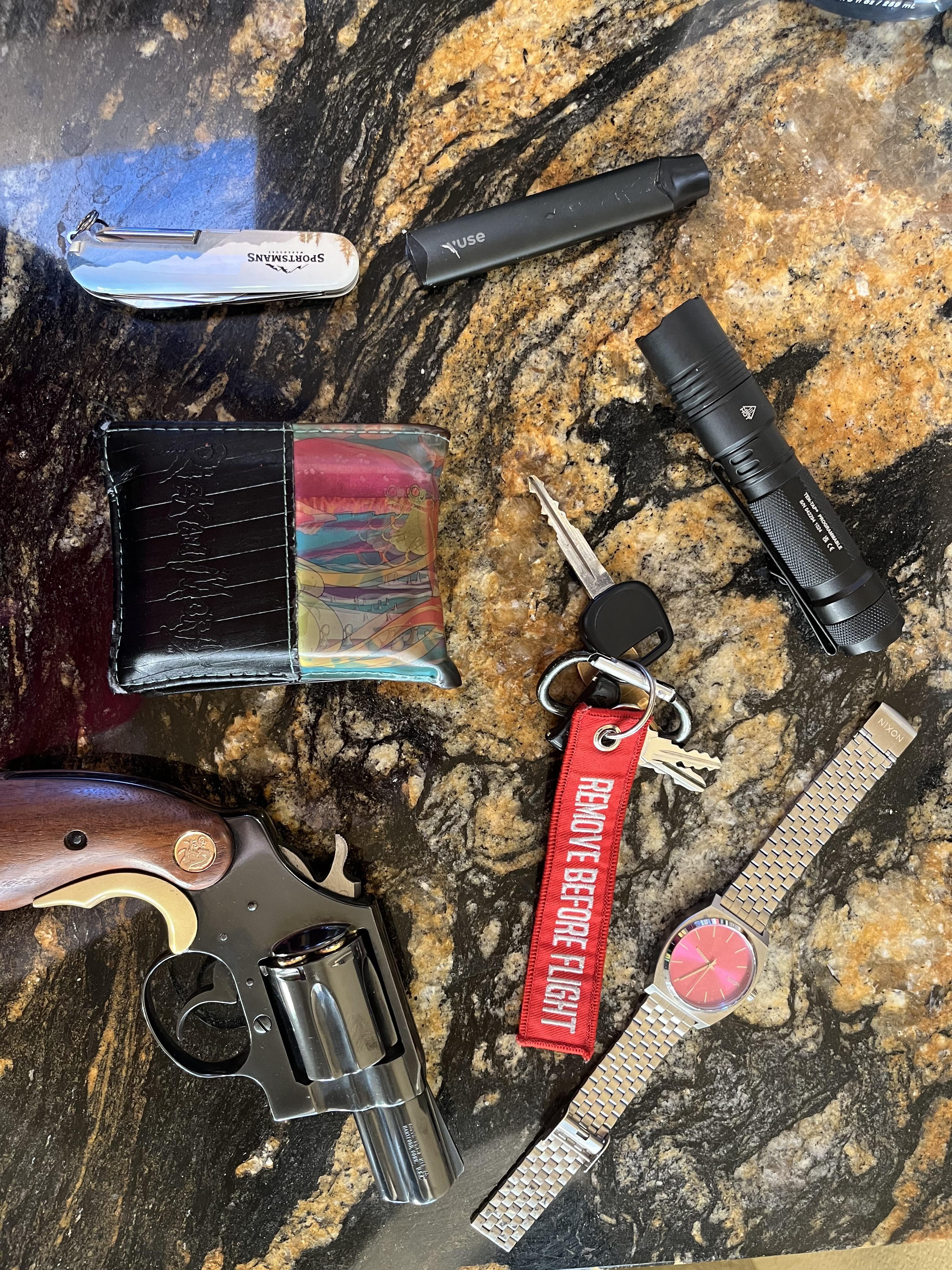 In EDC Everyday Pocket Carry January 16, 2026 -Nixon watch-Colt detective special .38 -Rick n Morty wallet (had since middle-school)-Vuse 5%-Swiss Knife (my pocket friend from sportsman’s)-Steamlight 1000 lumen-truck keys cause i just learned manualby Apprehensive_Link_26 EDC Prev Post NKD, Eutsler Neutralizer January 16, 2026 Next Post Friday Necessities January 16, 2026 Related Posts Nail clipper aka cable strippet January 16, 2026 Flashback Friday: late 90s / early 00 EDC January 16, 2026 1505 Love January 16, 2026 2 Comments AutoModerator 2 hours ago Thank you for posting to r/EDC! Include a detailed item list (make/model) within **1 hour** of submission. Lists can go in the title, a comment, or the image. Posts without lists will be removed. If you have already provided a list, not further action is needed, thanks | [FAQ](https://www.reddit.com/r/EDC/wiki/faq)*I am a bot, and this action was performed automatically. Please [contact the moderators of this subreddit](/message/compose/?to=/r/EDC) if you have any questions or concerns.* Apprehensive_Link_26 2 hours ago streamlight**Write A CommentYou must be logged in to post a comment.