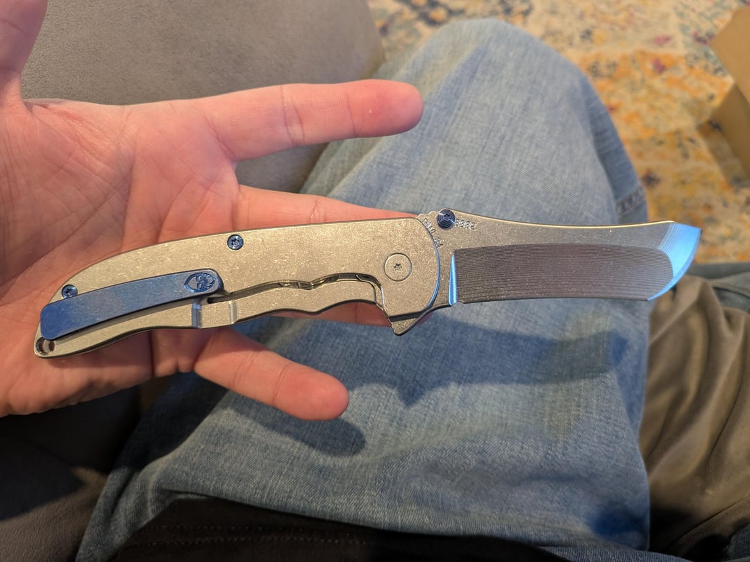 best action of any large folder I ever opened . one of the worst blade ever sandwiches between two pieces of Ti