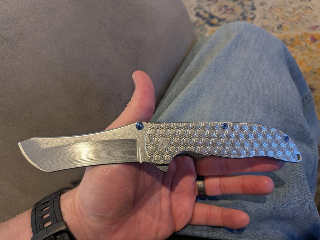 I love the blade shape and I love the pattern on the front scale. If I could find one that had matching patterns on both scales and didnt cost $1000, I would totally buy one.