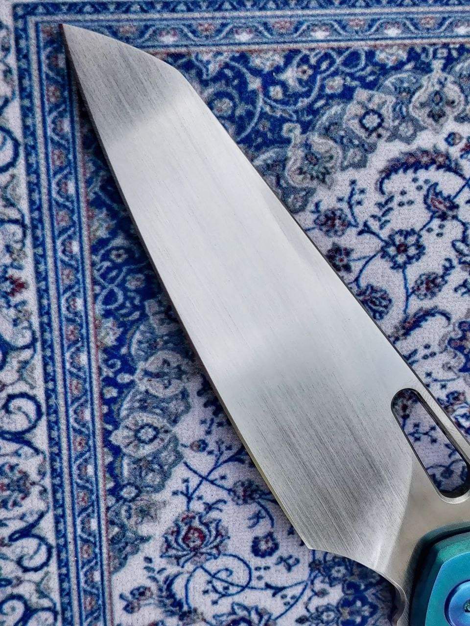 With the help of two talented masters this knife was reborn. The main, but least visible changes are made to the locking system. The flipper tab, which caused trouble to some users being too thin and cutting fingers, was laser reprofiled for more easy non slippery grip. The internal stop pins were replaced, leaving the mechanism intact, but the steel lock bar can no longer be disengaged from the handle if pulled too strong.