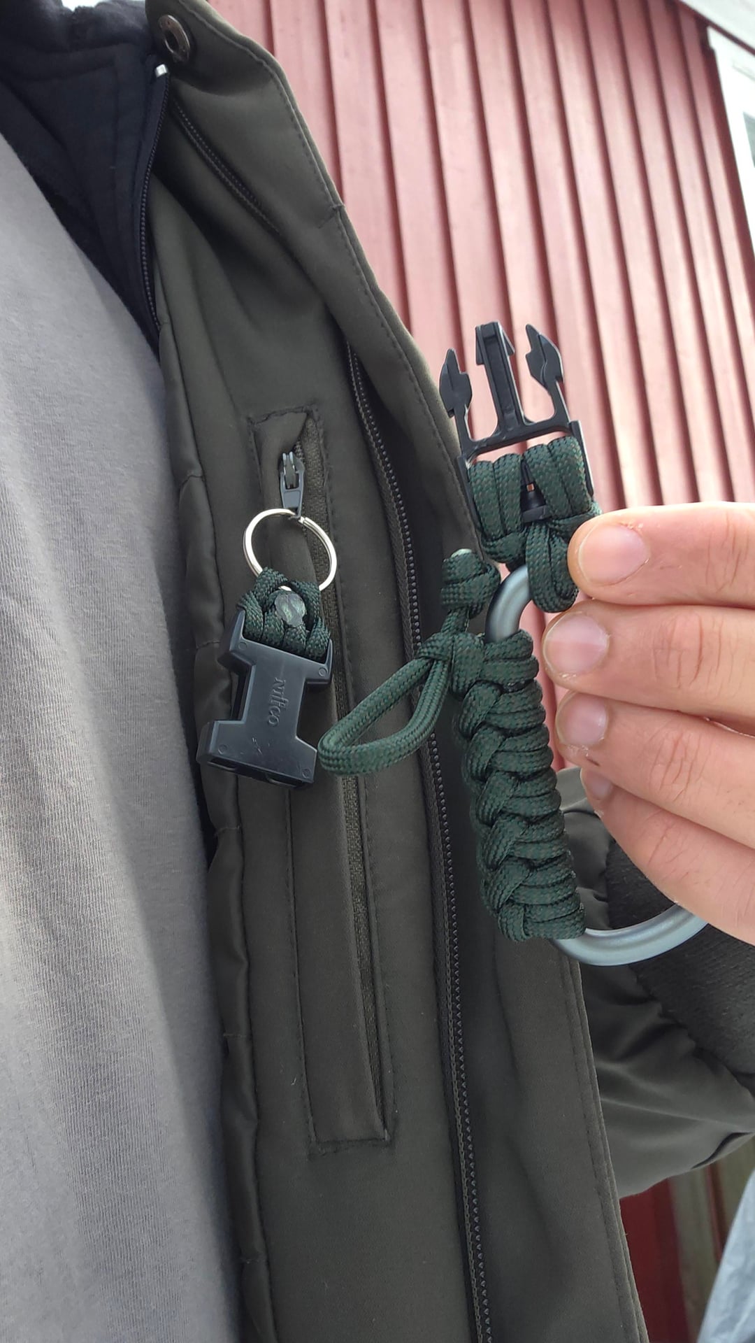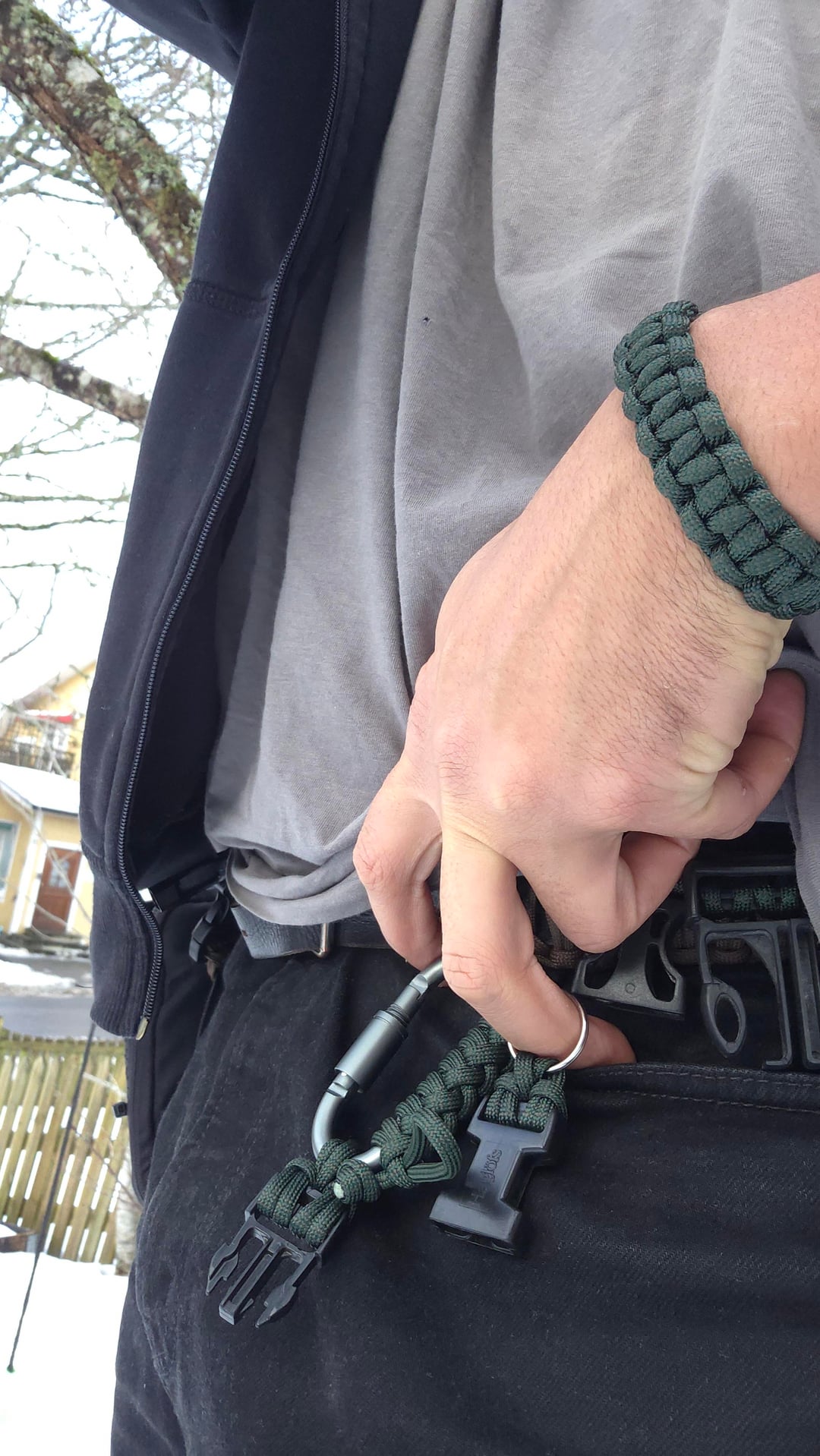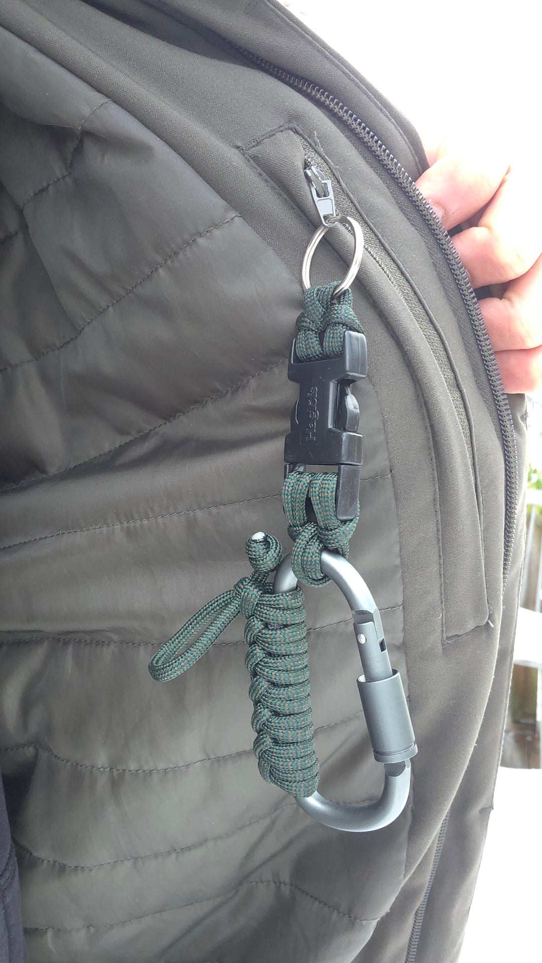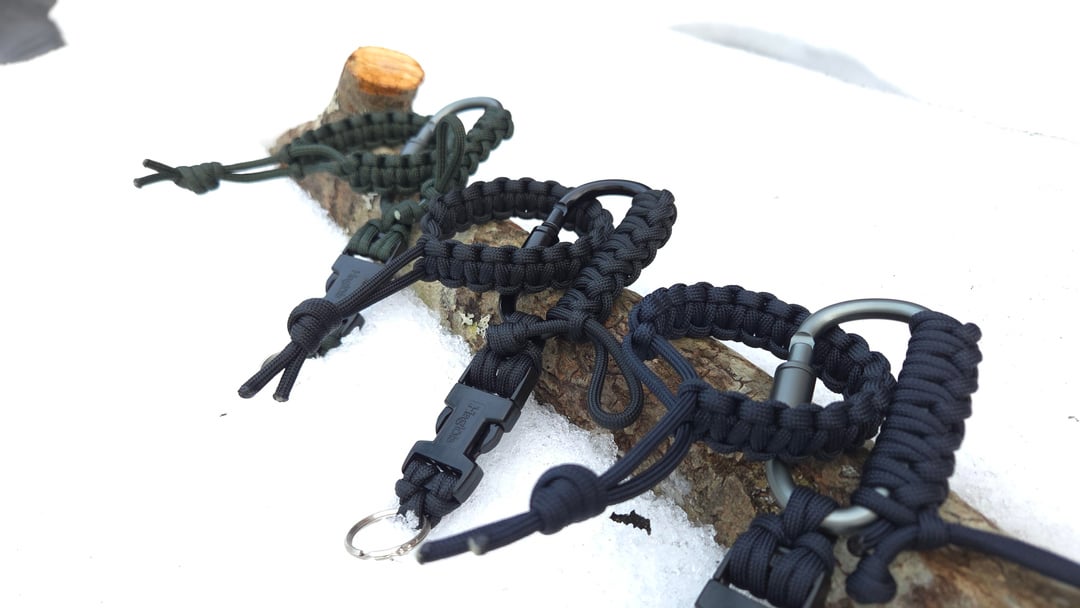 The idea is max usability with minimal bulk. You can clip it by the carabiner or use the keyring, depending on how you carry. The carabiner also has a 1 m quick-release 550 paracord woven in for fast access when needed.