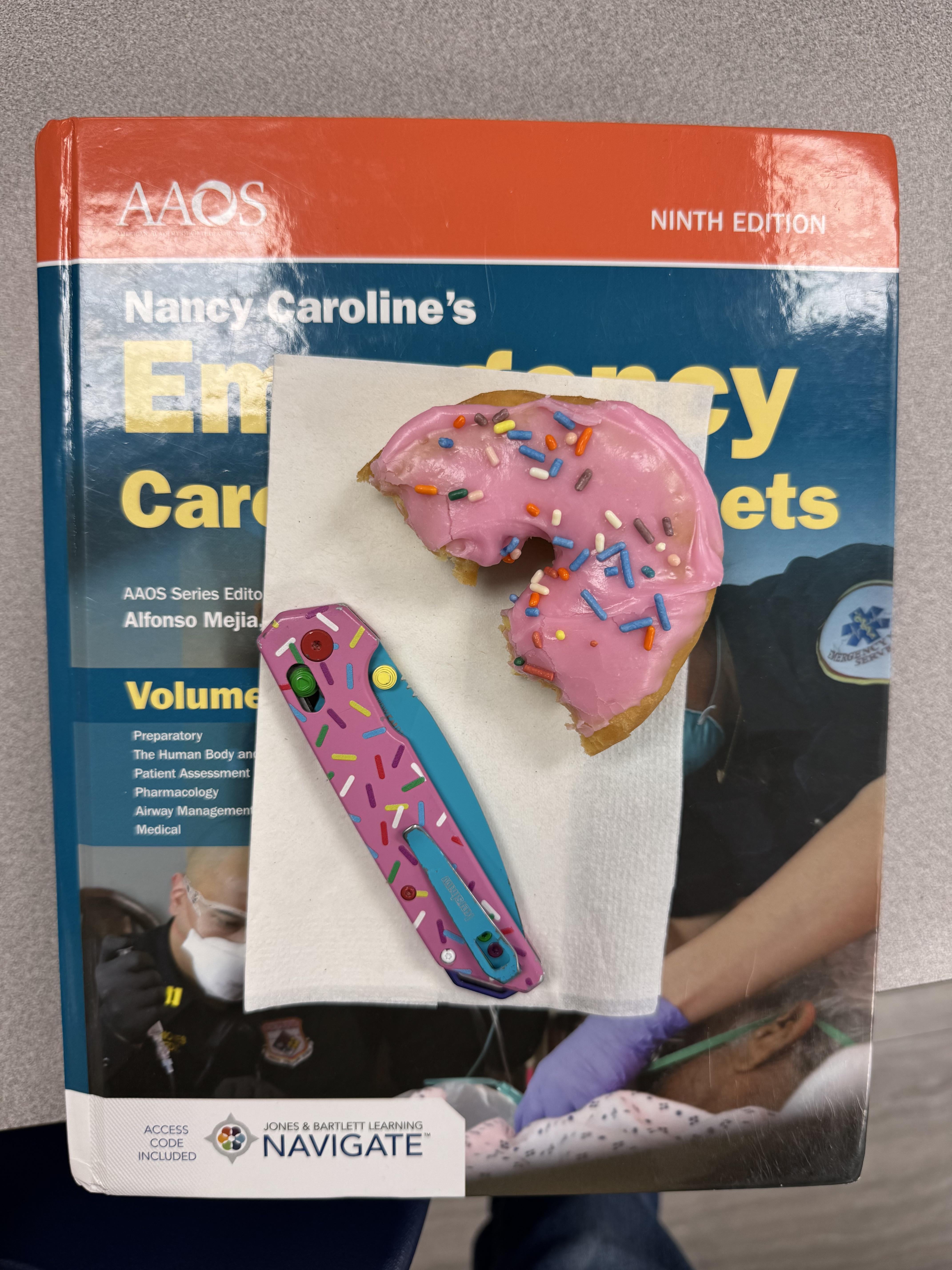 In EDC Weekend paramedic study carry January 17, 2026 Early morning study carryKershaw Dessert WarriorEmergency Care in the Streets Vol. 1 TextbookDunkin’ Donuts strawberry frosted donut by Blayden_Ridge EDC Prev Post Dark Water with OG accents January 17, 2026 Next Post Daily carry January 17, 2026 Related Posts Simple Green January 17, 2026 Small knife big gun? January 17, 2026 All day every day January 17, 2026 2 Comments AutoModerator 2 hours ago Thank you for posting to r/EDC! Include a detailed item list (make/model) within **1 hour** of submission. Lists can go in the title, a comment, or the image. Posts without lists will be removed. If you have already provided a list, not further action is needed, thanks | [FAQ](https://www.reddit.com/r/EDC/wiki/faq)*I am a bot, and this action was performed automatically. Please [contact the moderators of this subreddit](/message/compose/?to=/r/EDC) if you have any questions or concerns.* Roscoe-is-my-dog 2 hours ago Forbidden donut….sacra-liciousWrite A CommentYou must be logged in to post a comment.