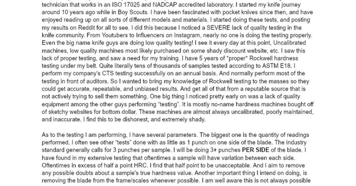 Thanks for doing this. I’m always questioning if my steel is what it says it is on certain knives. I’d certainly be more likely to buy from companies that are consistently meeting the optimum HRC for the type of steel.