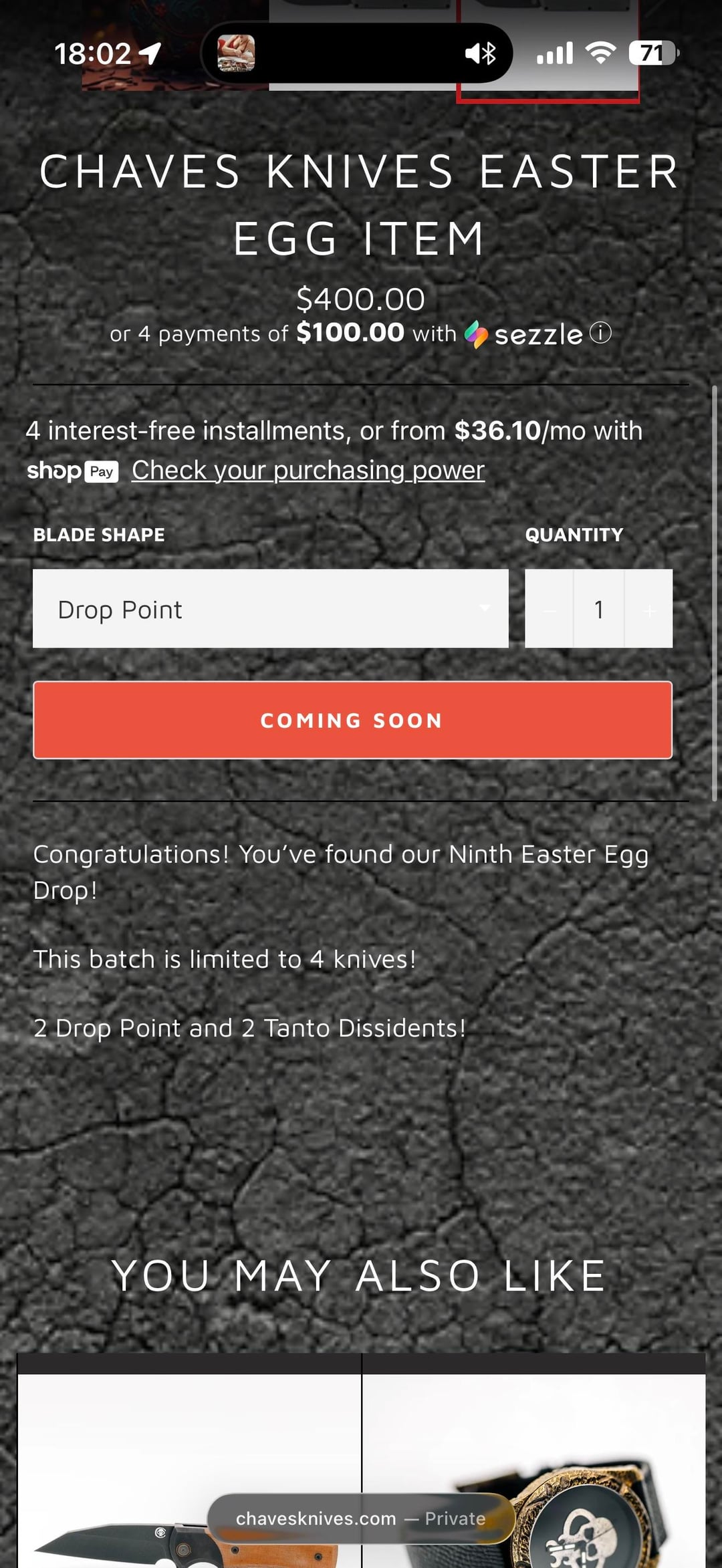 In KNIVES Chaves Easter egg drop January 17, 2026 Just got lucky and scored this sick Chaves Automatic OTF. Total of 4 knives they just released, 2 drop point and 2 tanto. Does the Easter egg drops they do ever go into full production or are these color ways super exclusive?by DapperIndependent730 KnifeKnives Prev Post Espada XL in the pocket January 17, 2026 Next Post Hey, that’s pretty cool January 17, 2026 Related Posts First knife with S45VN. Curious to see how it is vs Cruwear and S30V [Spyderco Para 3] January 18, 2026 MKBHD tested a $400 knife that charges wirelessly and assists with cutting (;;;This seems like crap;;;;;) January 18, 2026 Hinderer XM-18 3.5 Aggressor January 18, 2026Write A CommentYou must be logged in to post a comment.