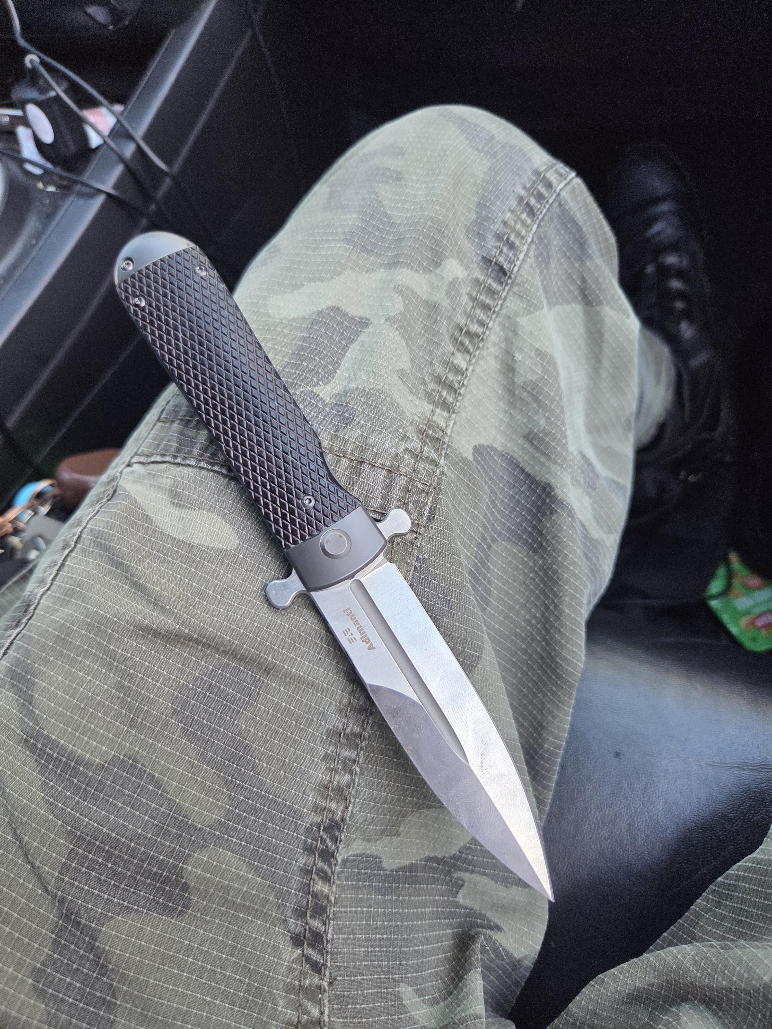 reminds me of a swing guard. it is litteraly the only knife ive held that actually has 0 blade play. like I'm not even exaggerating , its not over tightened or anything no front/back or side to side at all