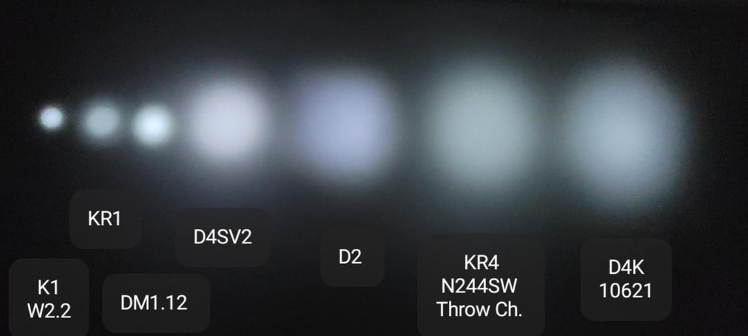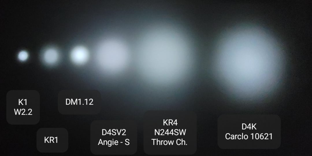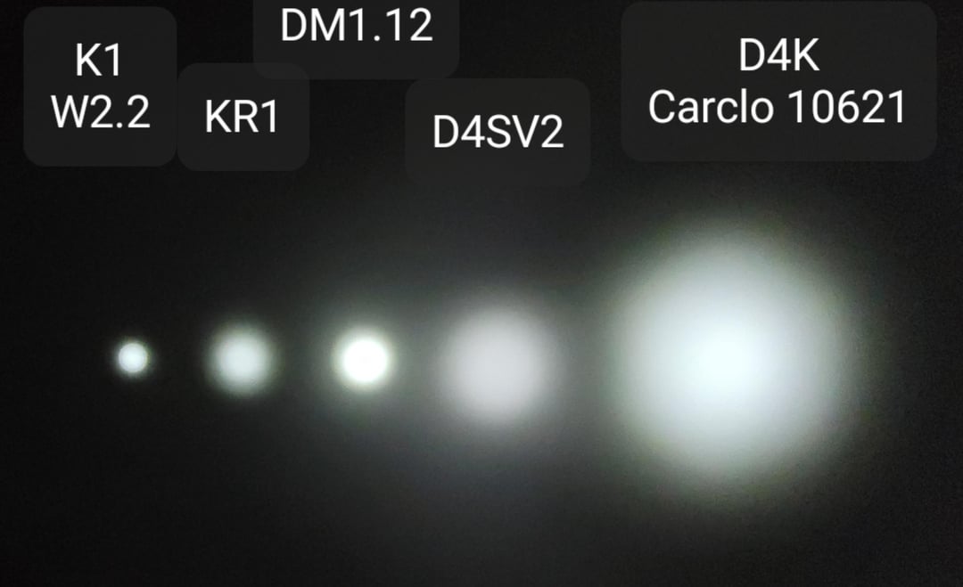 All lights are with Osram W2, except K1 that is with W2.2 emitter. Distance is approx. a 7 feet. D4SV and D2 have MG 804 for tint correction.