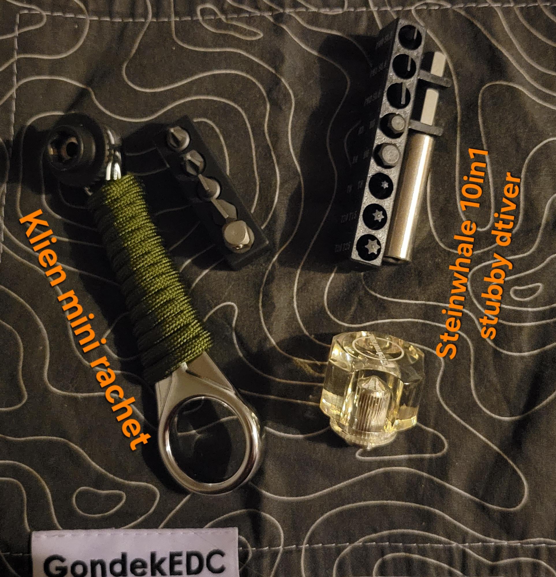 2.Steinwhale 10in1 stubby driver. Playing with a cord wrap for the Klien just for fun, its a work in progress, the smooth finish and taper is causing the wrap to move around.