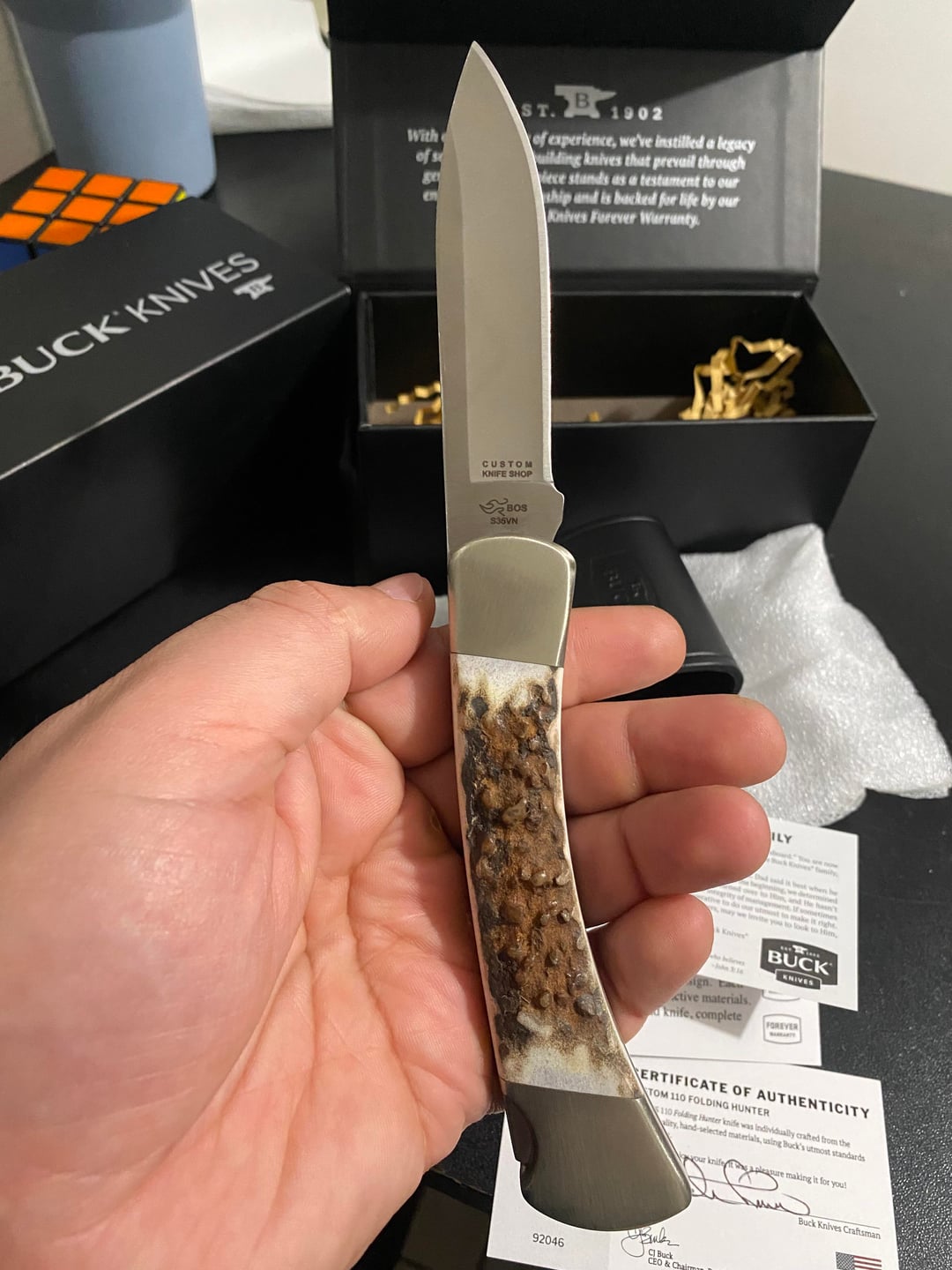 In KNIVES Buck 110 Drop Point Stag Handle, brush bolsters January 19, 2026 Buck 110 Drop Point Stag Handle, brush bolstersby Strange-Goose-4285 KnifeKnives Prev Post Kershaw Dividend! January 19, 2026 Next Post Yet another single led TS10 January 19, 2026 Related Posts Anyone else match knives to outfits? Just me? March 3, 2026 SOTC – What next? March 3, 2026 Nkd, i present the knockoff bugout, the kizer drop bear. March 3, 2026 1 Comment laserslaserslasers 1 month ago She’s a beaut Clark.I’m stoked for the 110 slim heritage.Write A CommentYou must be logged in to post a comment.