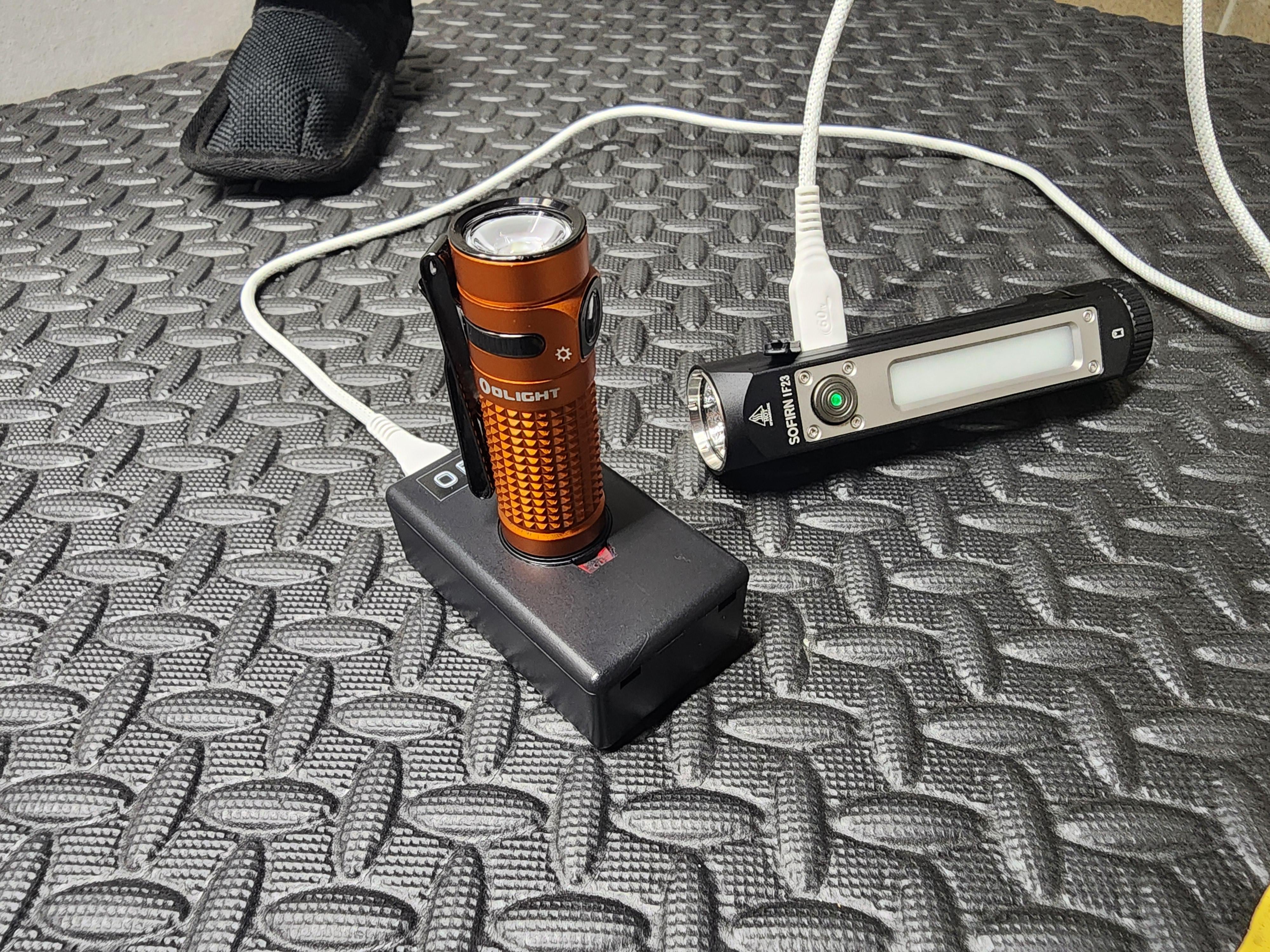My sofirn if23 charging my olight baton 4.