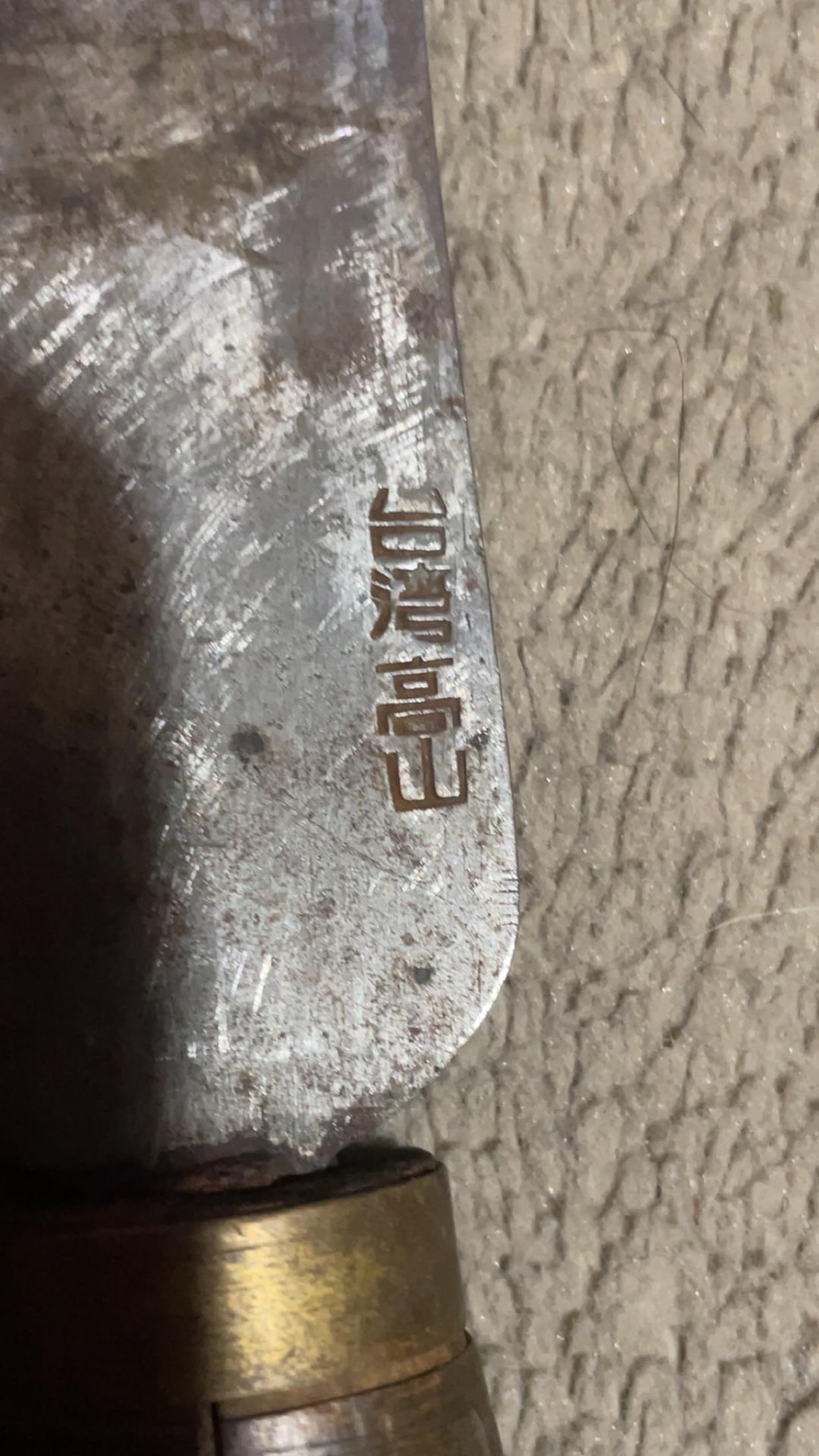 Atayal blade. Used by Taiwan's Atayal Indigenous folk. Has the inscription "台湾高山" which translates to "Taiwan High Mountain". I believe my great uncle owned this, he was a 7th degree black belt and taught White Dragon Martial Arts. It's 13.5 inches in length from handle to blade.