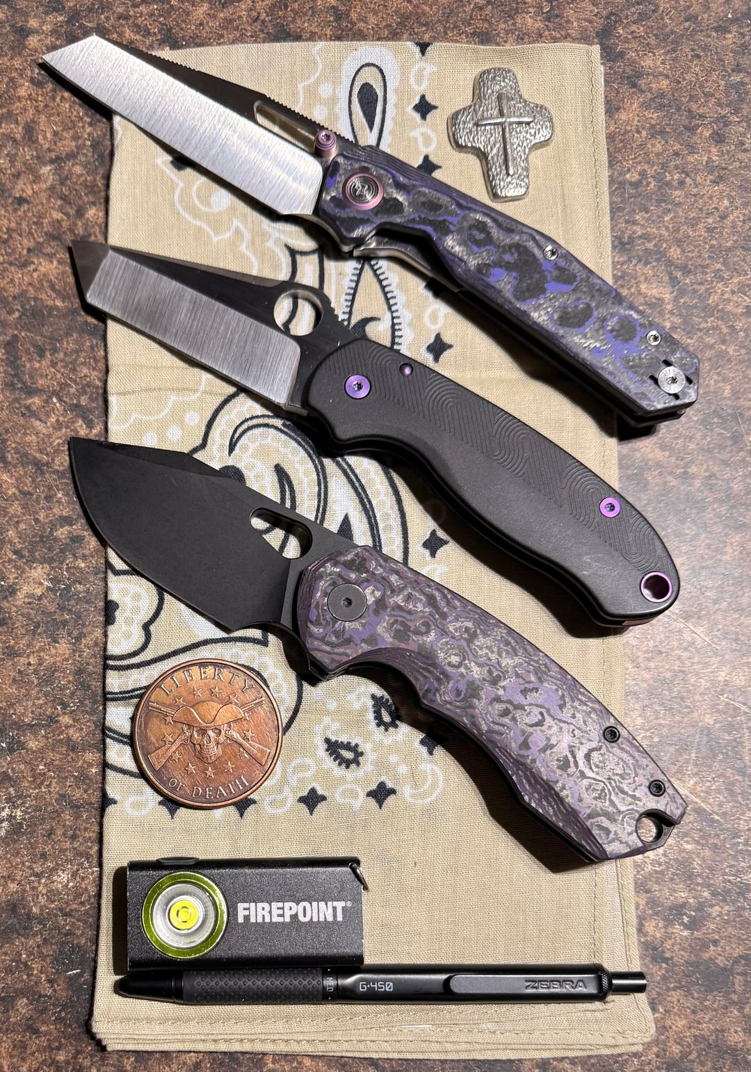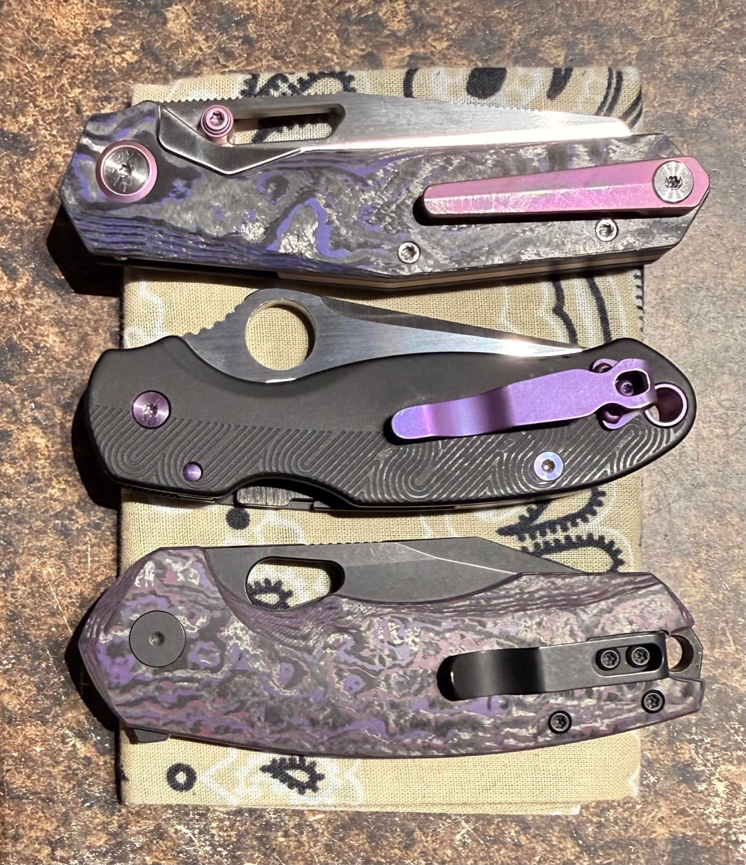 In KNIVES Happy Tuesday Knfe-Peeps! Carries β January 20, 2026 Purple Tuesday? π€·π½ββοΈπβ¦ top to bottom:Divo β Tallboy. Spyderco β Para 3, tanto reblade.Urban EDC β Becarro.There, I did my part β¦ Now, whatβs in your pockets/on your person/etc??by OG-BigPapa-KJ KnifeKnives Prev Post KlΓΆtzli SBG 1 January 20, 2026 Next Post Can I still be a member in good standing if I bought these emergency auto lights at Costco? January 20, 2026 Related Posts It’s not much, but it’s mine. New LNW clip and bronze hardware. March 3, 2026 Ti Tues March 3, 2026 @tutareknives Warbird Mini in for Tanto Tuesday – @phoenixtoolworks Shelly Deadbolt along for the ride! #tutareknives #tutarekniveswarbirdmini #phoenixtoolworks #phoenixtoolworksshellydeadbolt March 3, 2026Write A CommentYou must be logged in to post a comment.