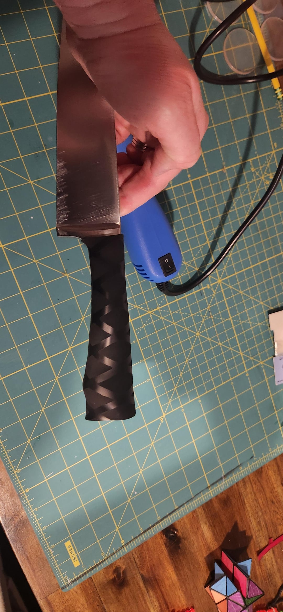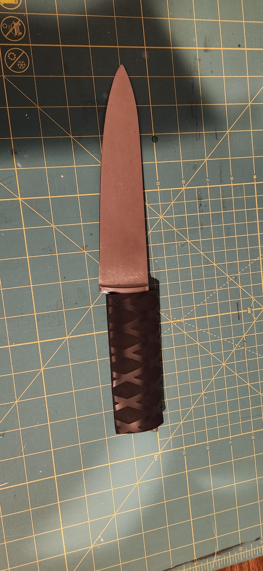 I posted a little while ago about a silicone knife handle that was deteriorating. Here is what I chose to do to fix it.
