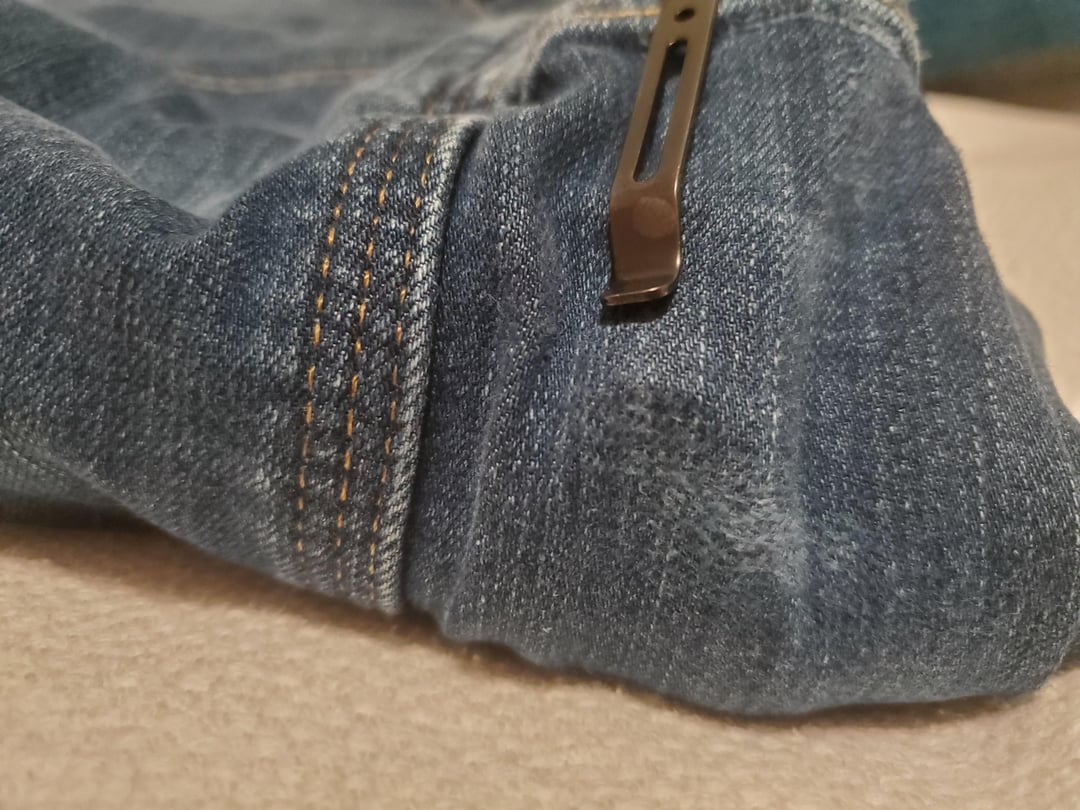 The narrow point in the convoy pocket clip is also damaging the top of the pocket but I suspect that can be fixed by getting a better clip, something I'd like advice with. My pocketknife does zero damage to my pants so I know it's possible.